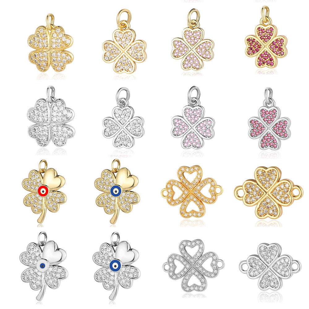 Copper inlaid zircon DIY four-leaf clover pendant.