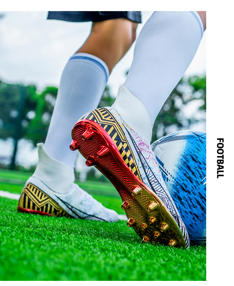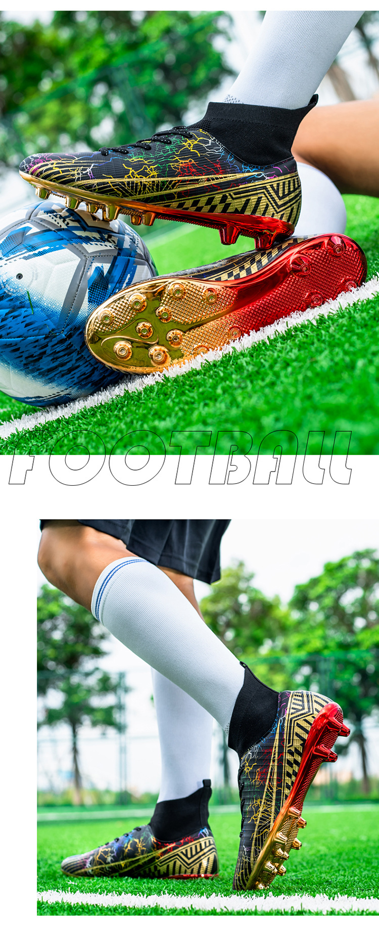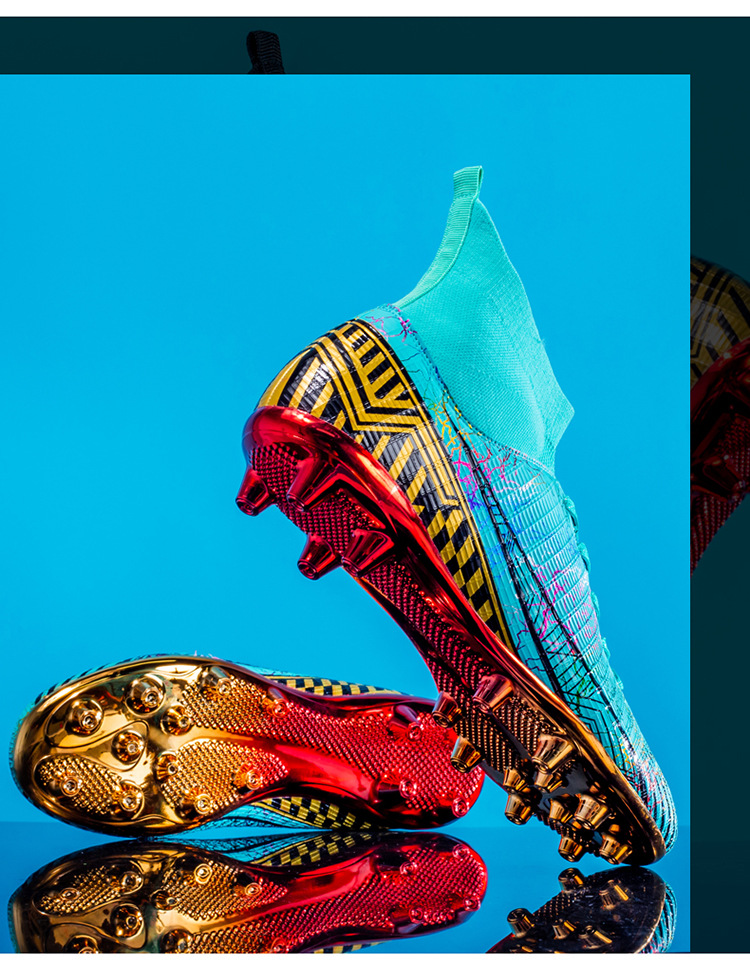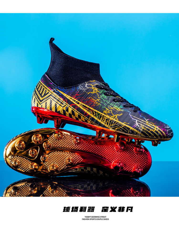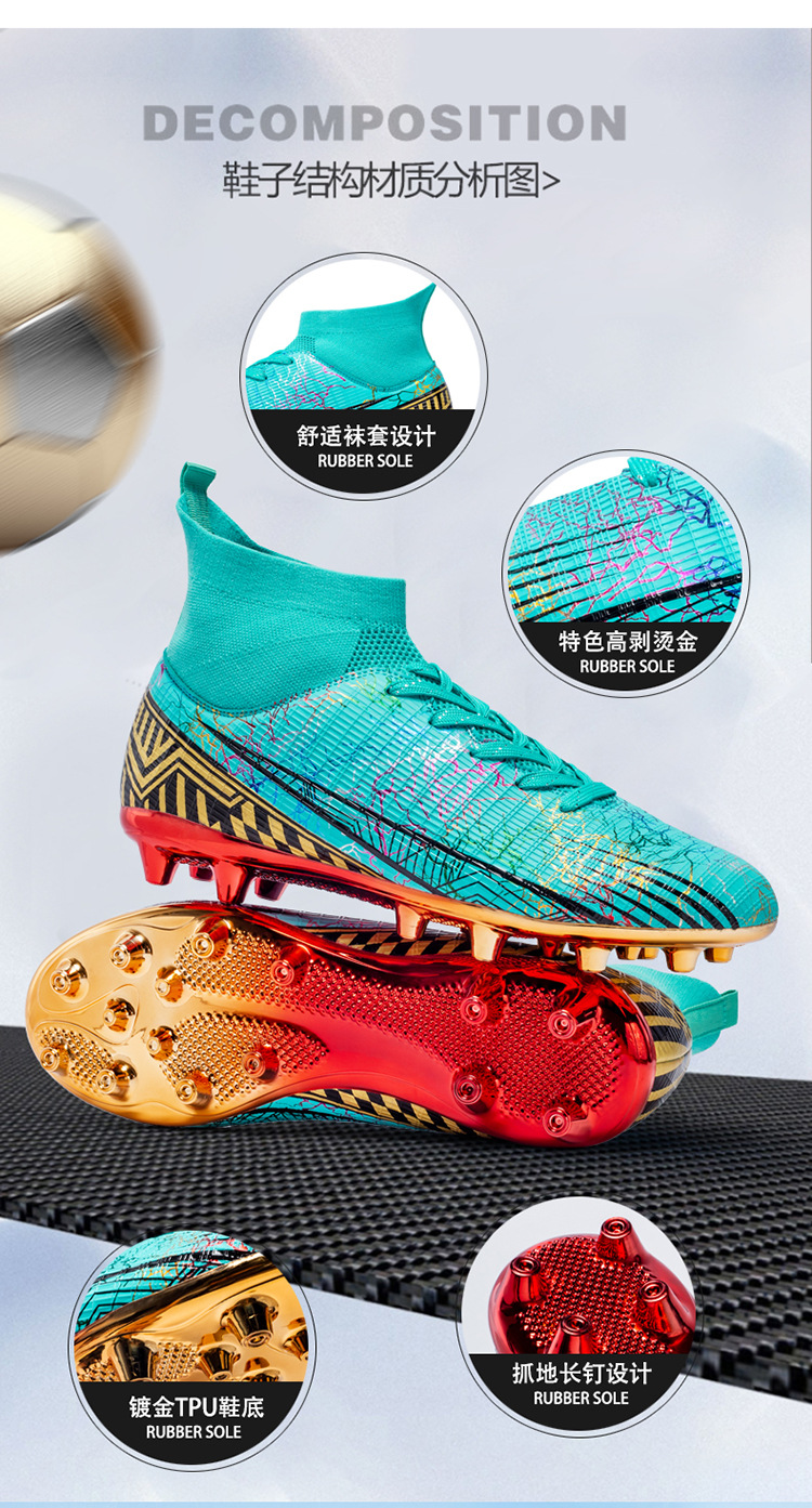 Cross-Border Large-Size Gold-Plated High-Top Soccer Shoes