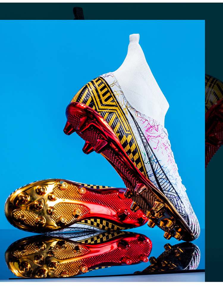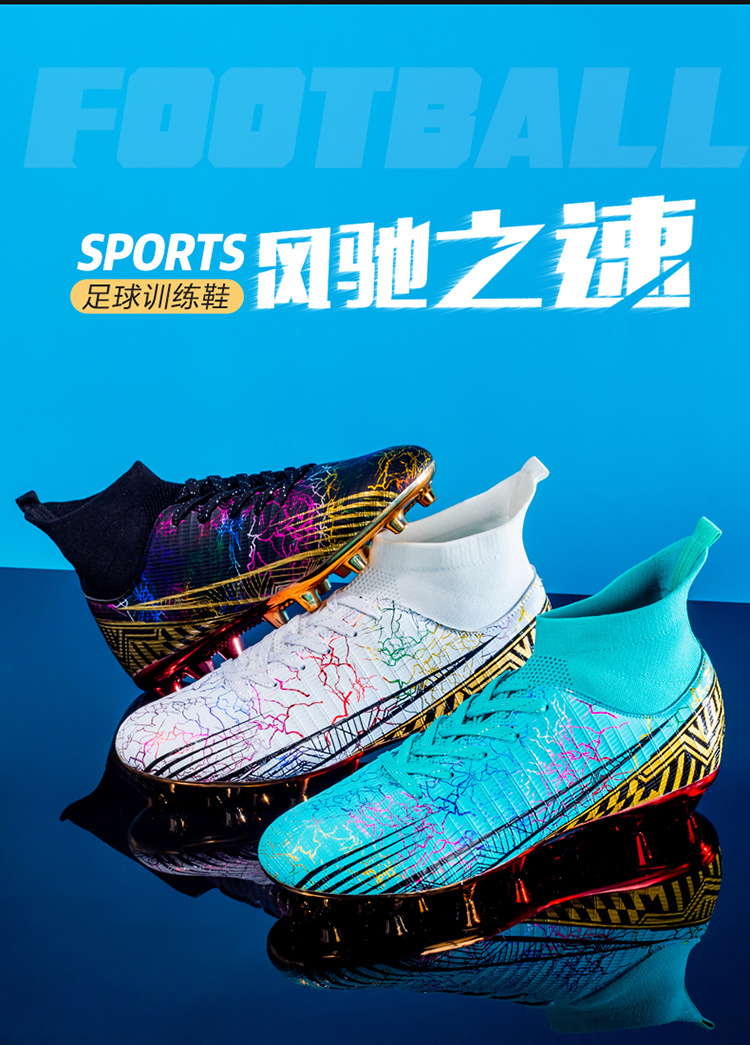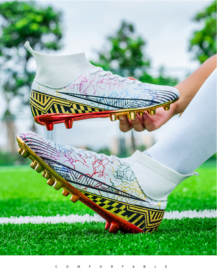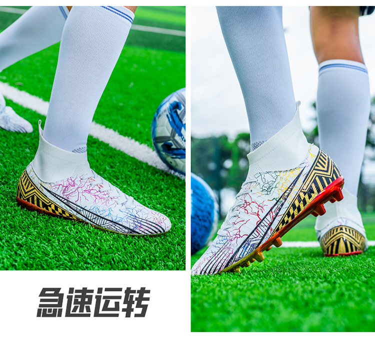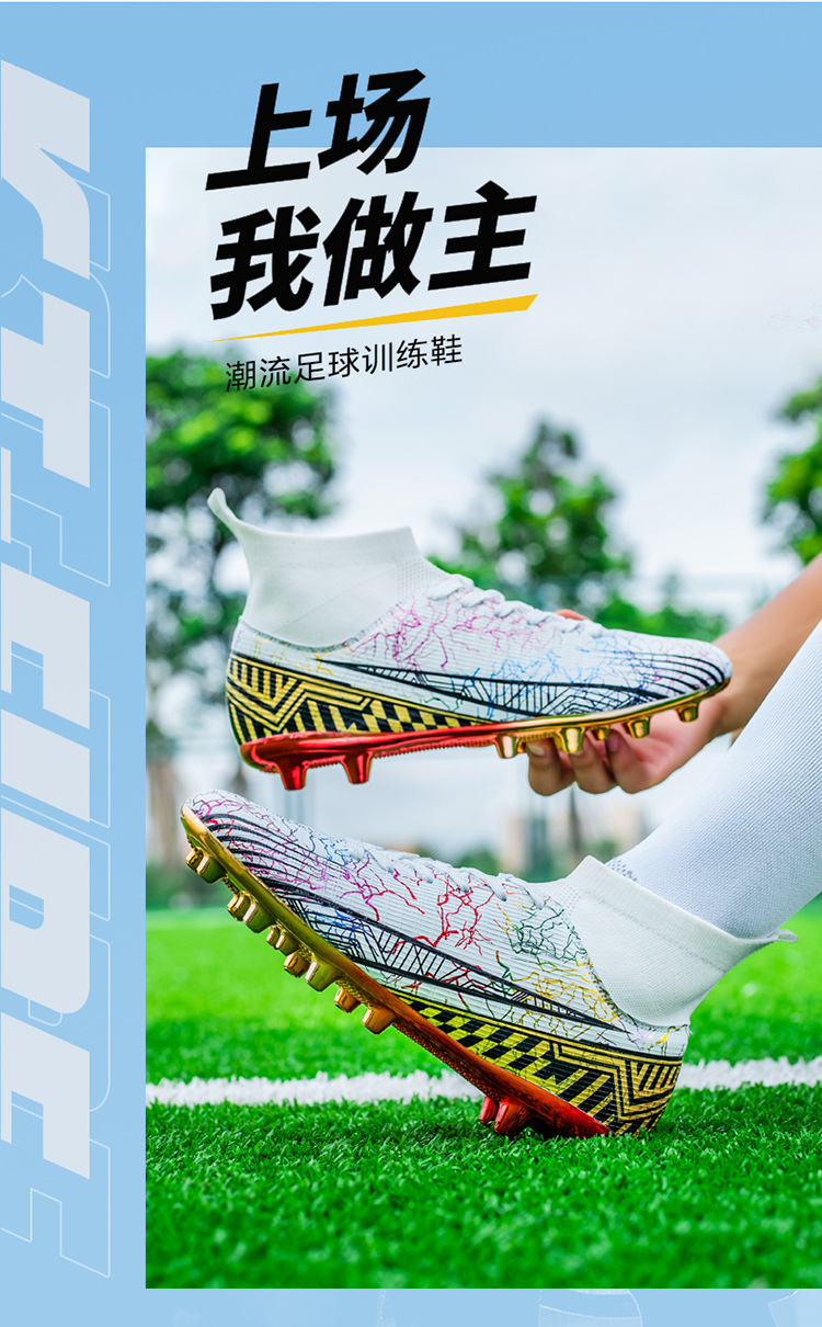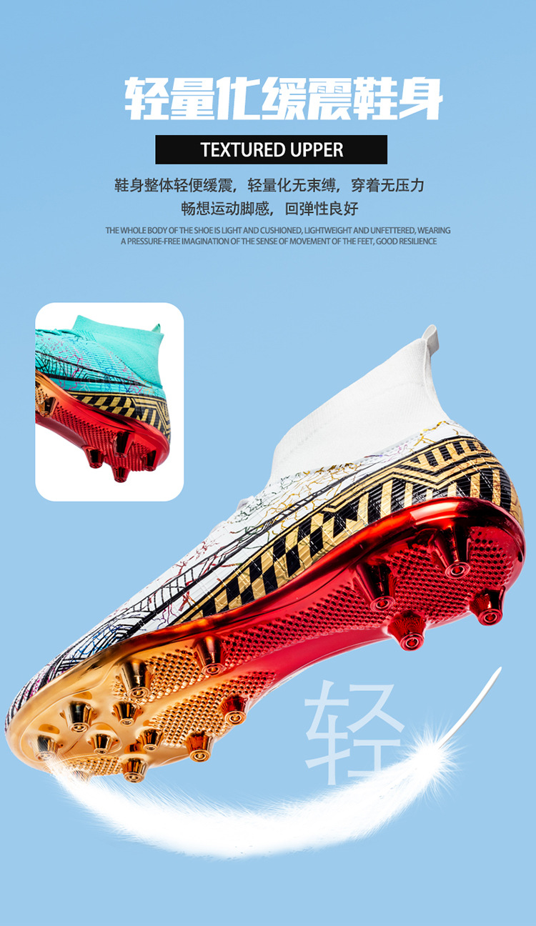 Cross-Border Large-Size Gold-Plated High-Top Soccer Shoes
