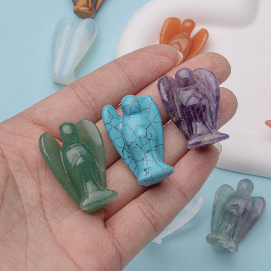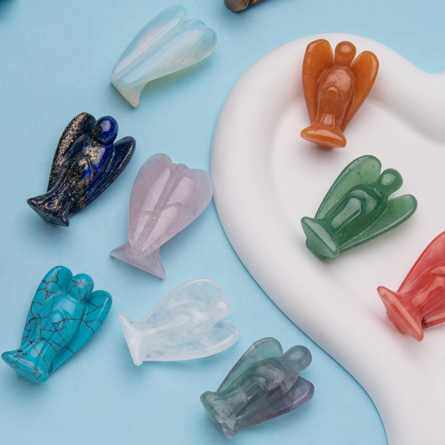 Cristal 1,5 polegadas anjo escultura pedra de quartzo diy decoração para casa pingente