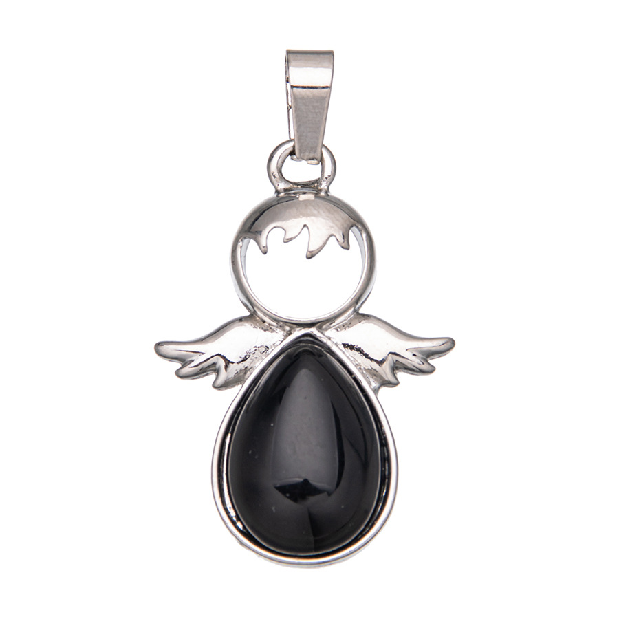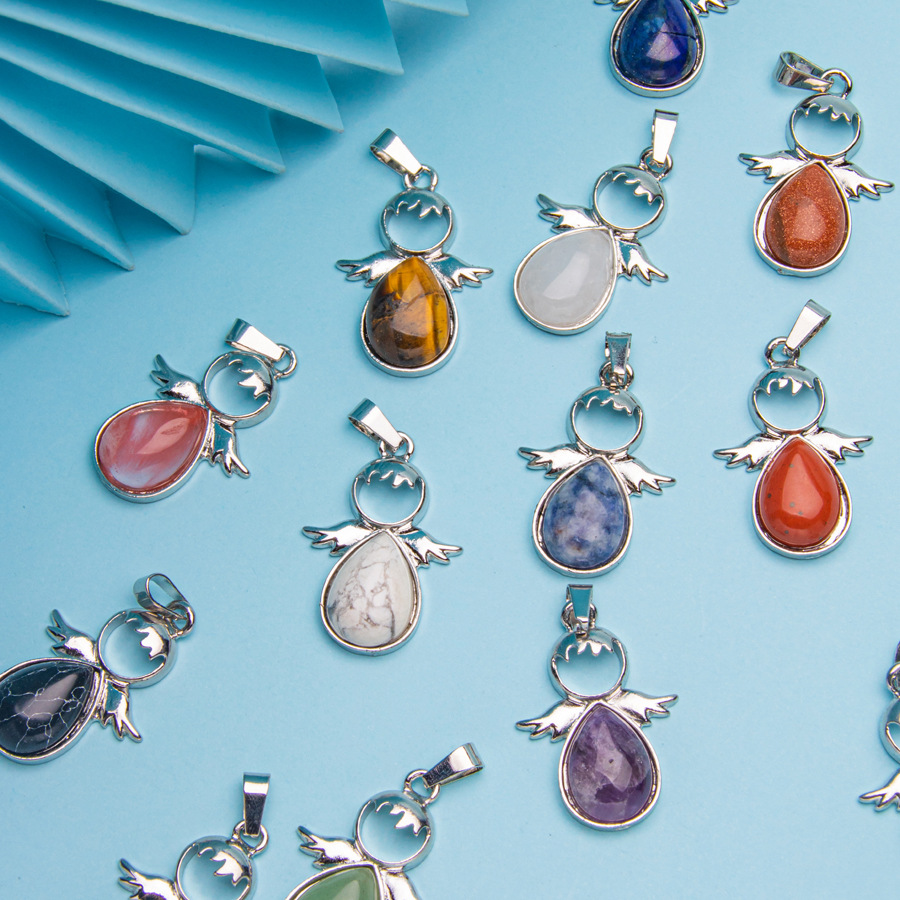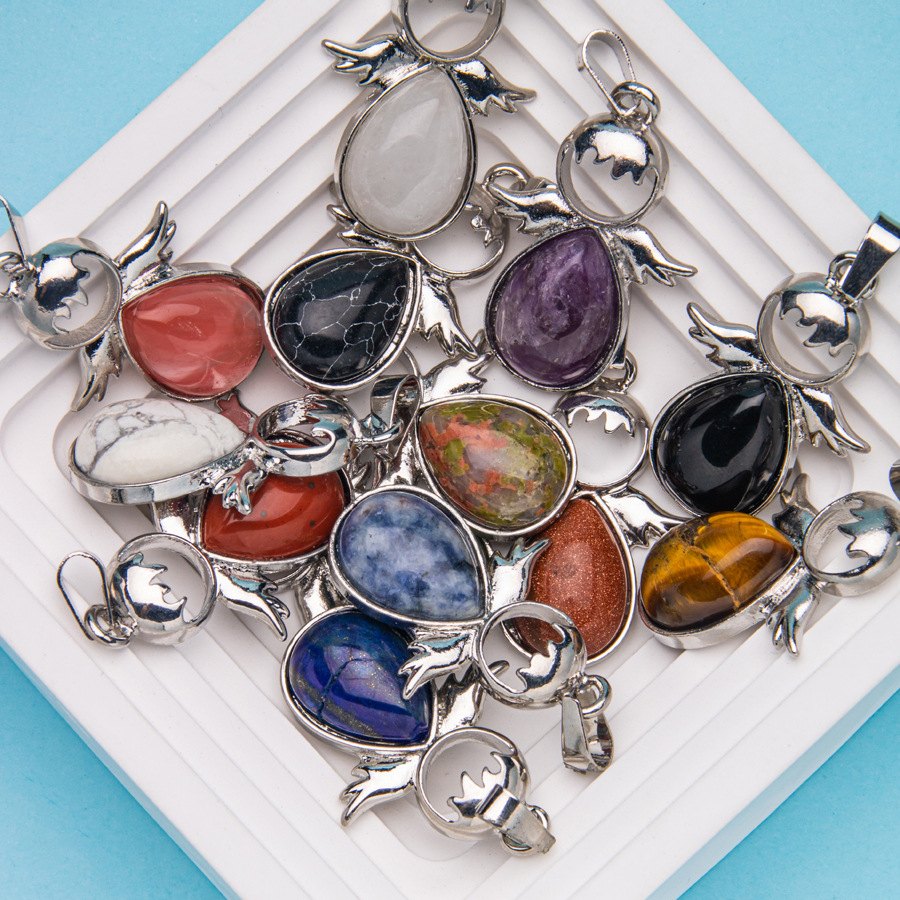 Pingente de cristal oval com asas de anjo de cristal gota d'água