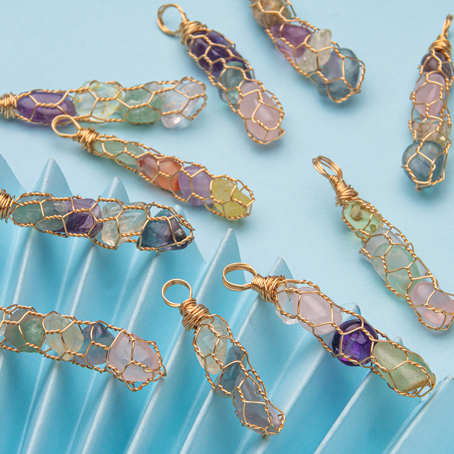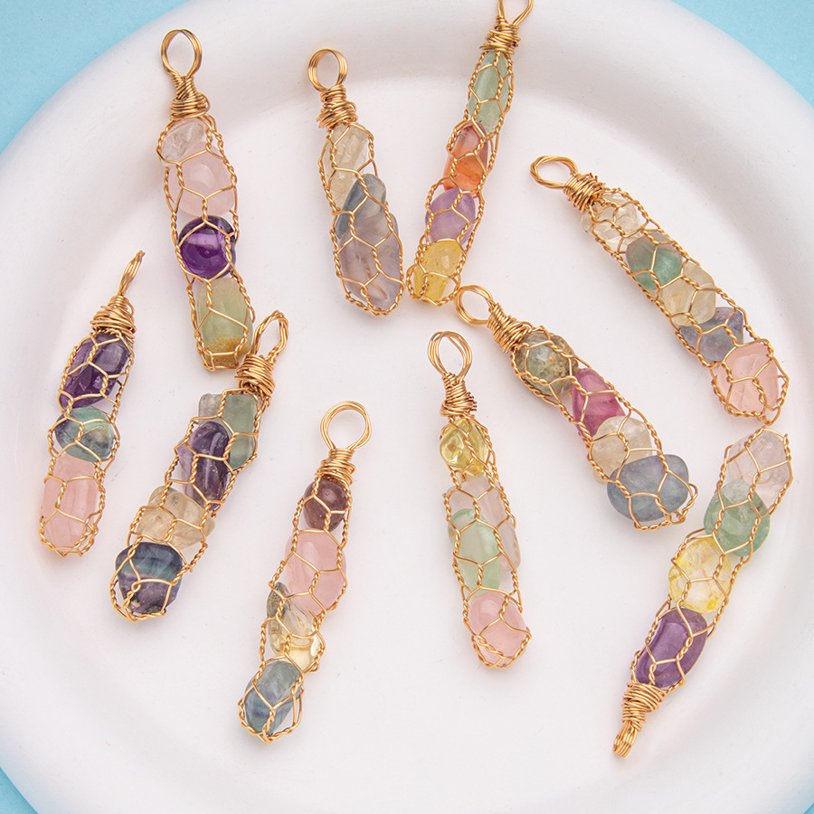 Saco de rede de envoltório de pedra bruta de cascalho de cor de cristal tecelagem DIY