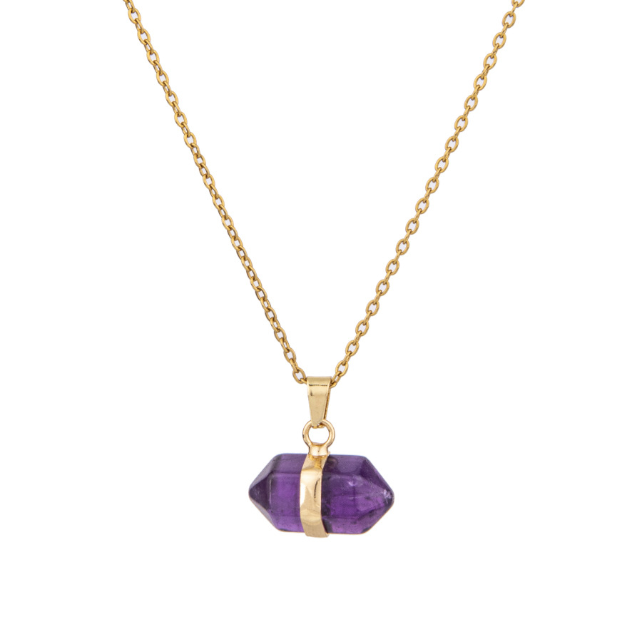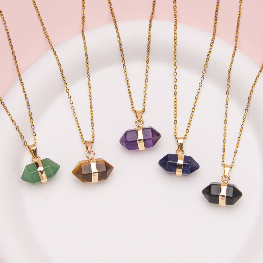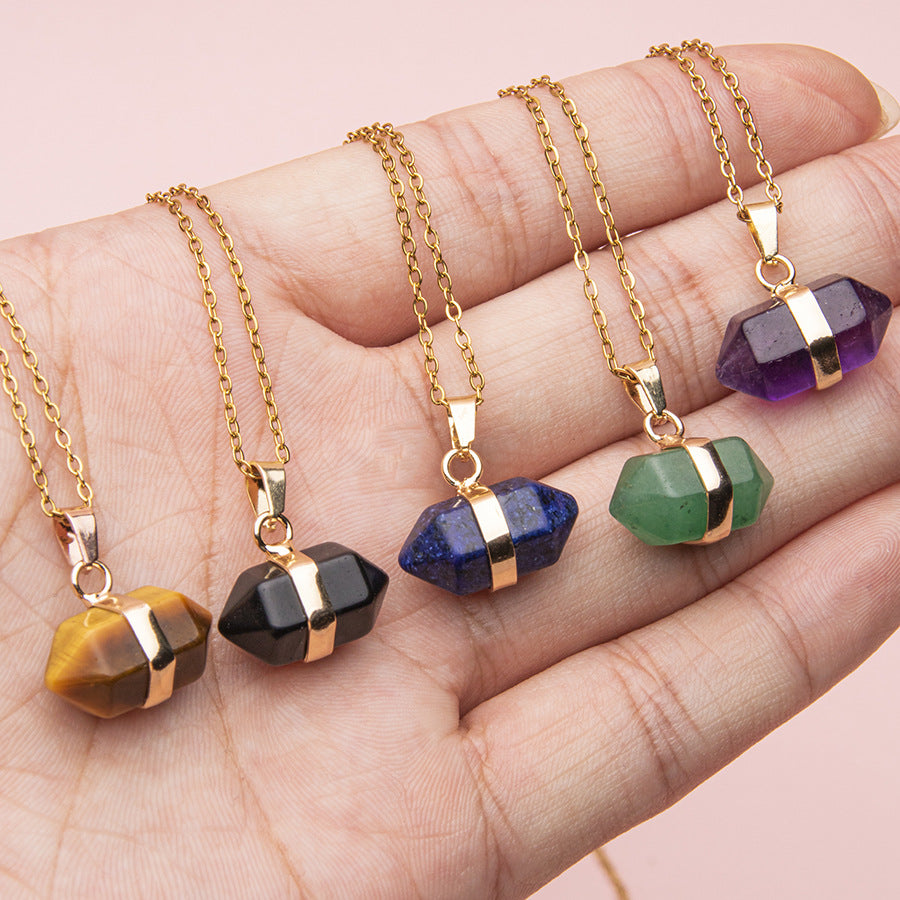 Pingente de coluna hexagonal de ponta dupla de cristal