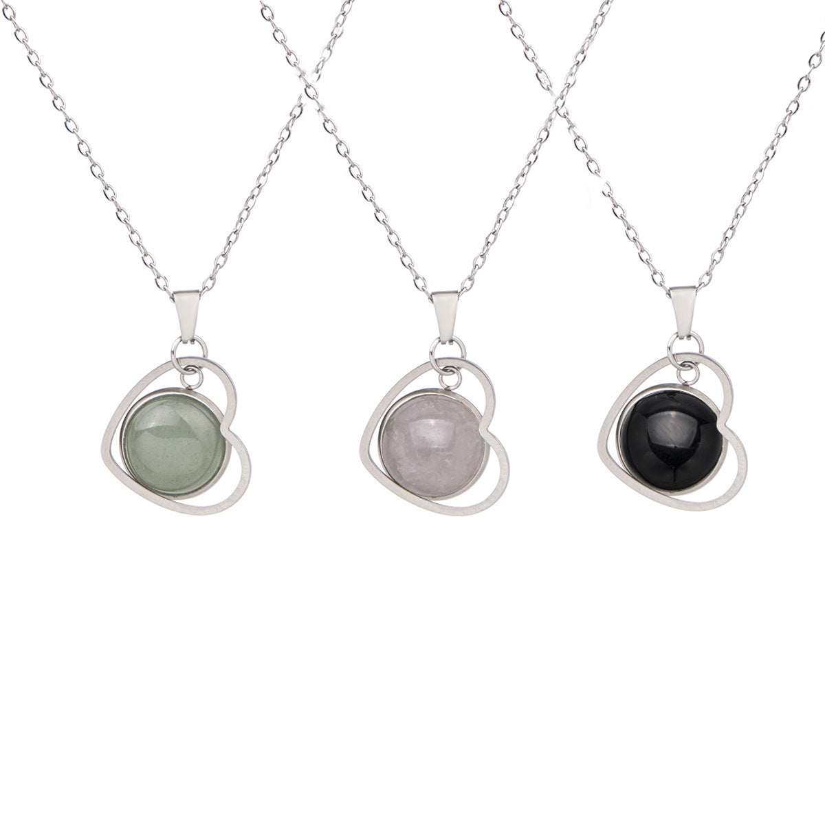 Colar com pingente de coração de cristal em aço inoxidável