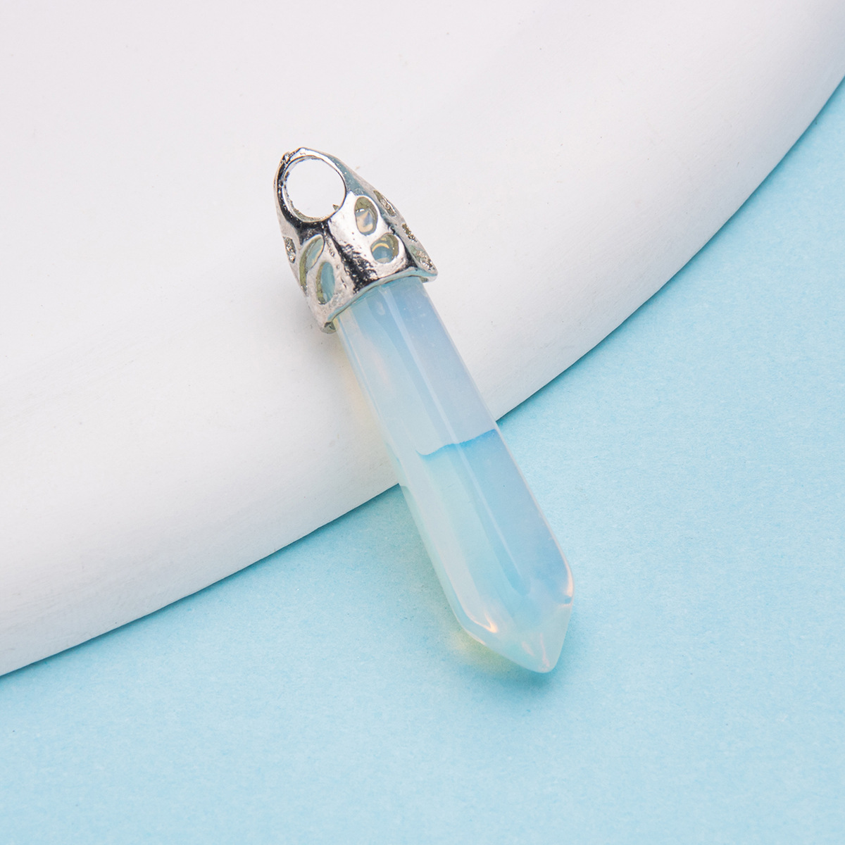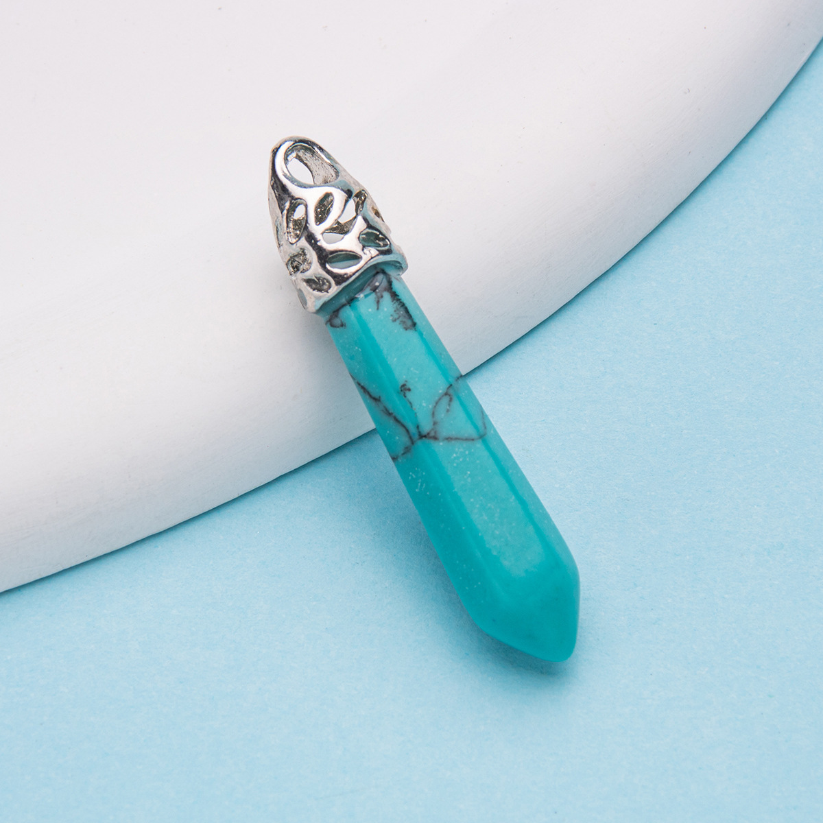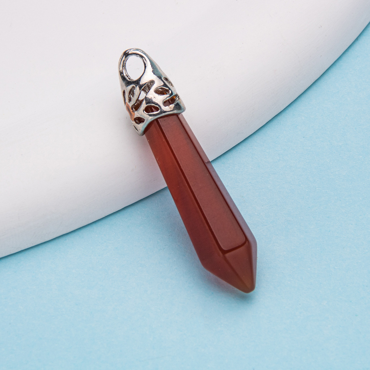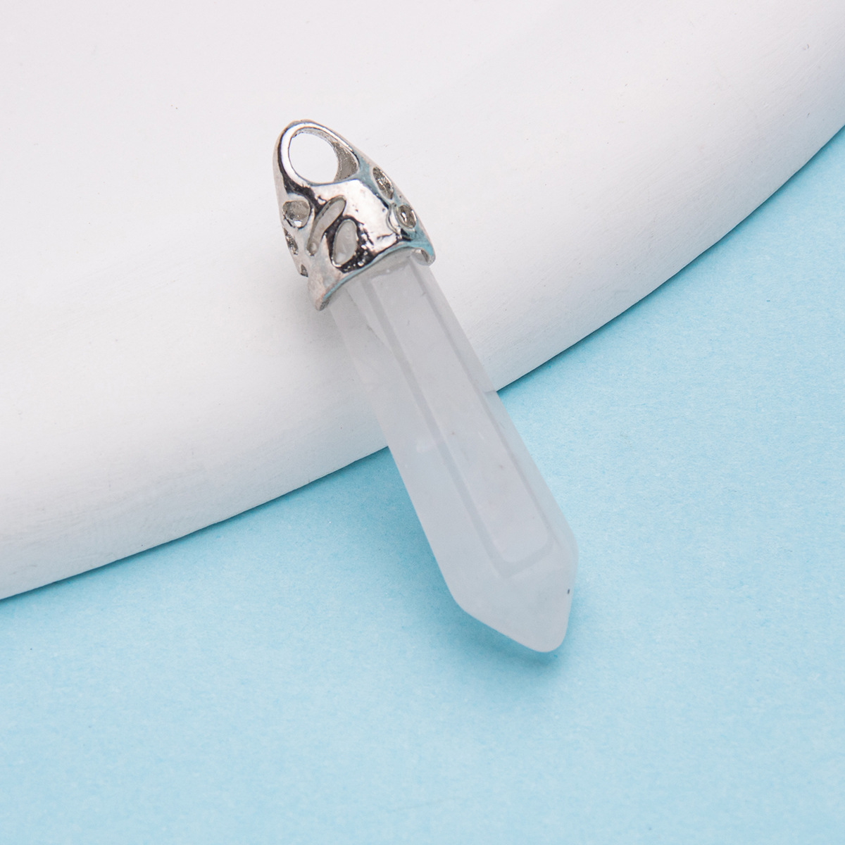 Colar com pingente de pilar hexagonal de cristal