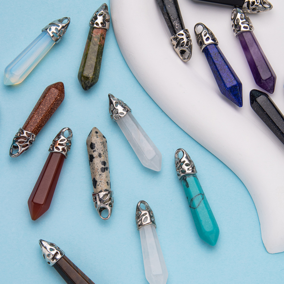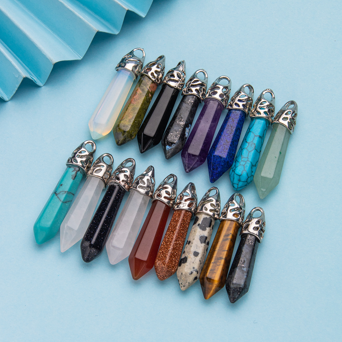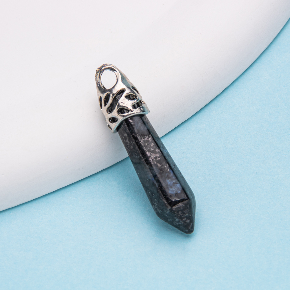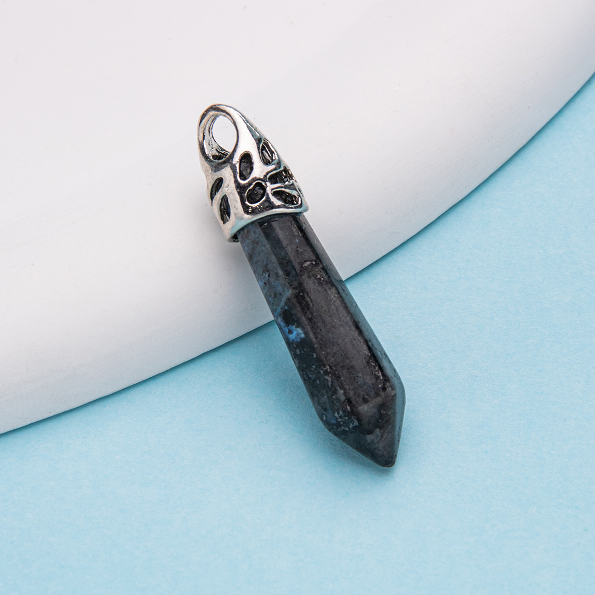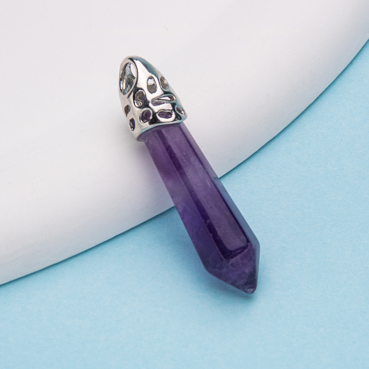 Colar com pingente de pilar hexagonal de cristal
