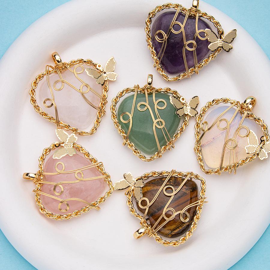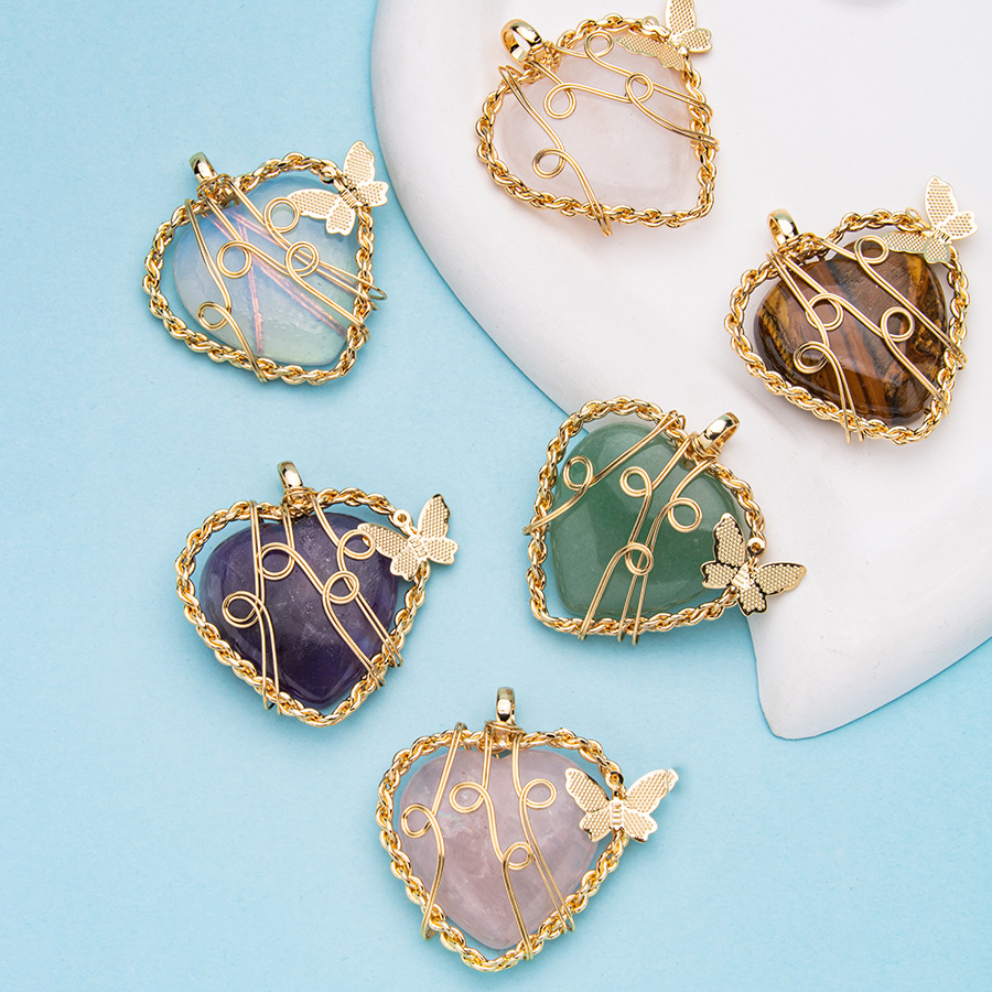 Colar com pingente de coração, árvore da vida, borboleta de seda cristalina