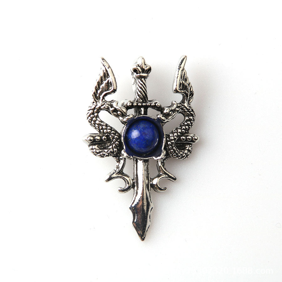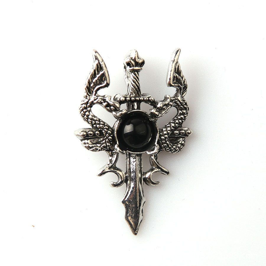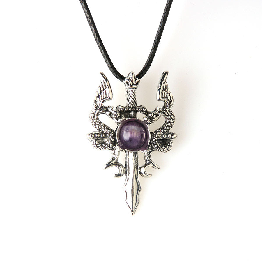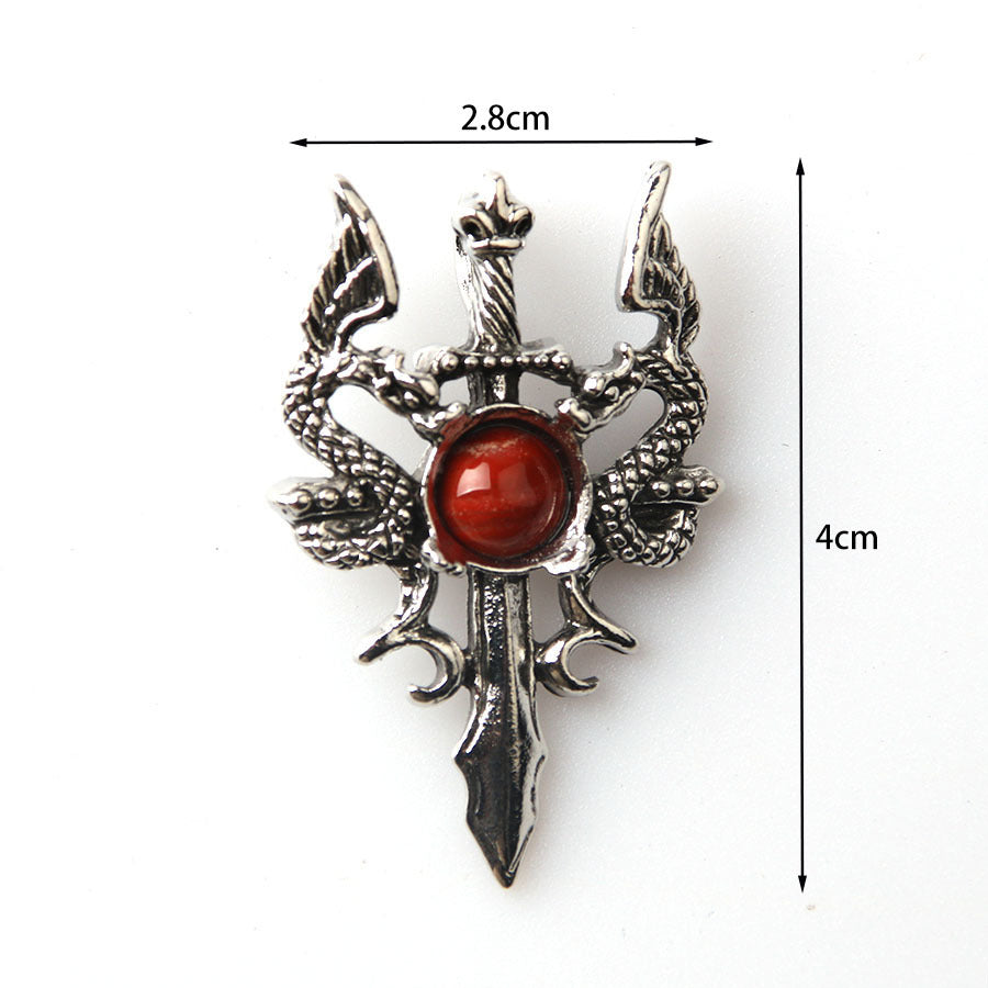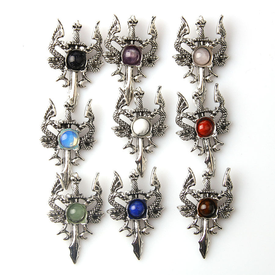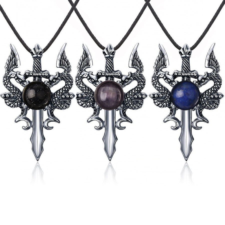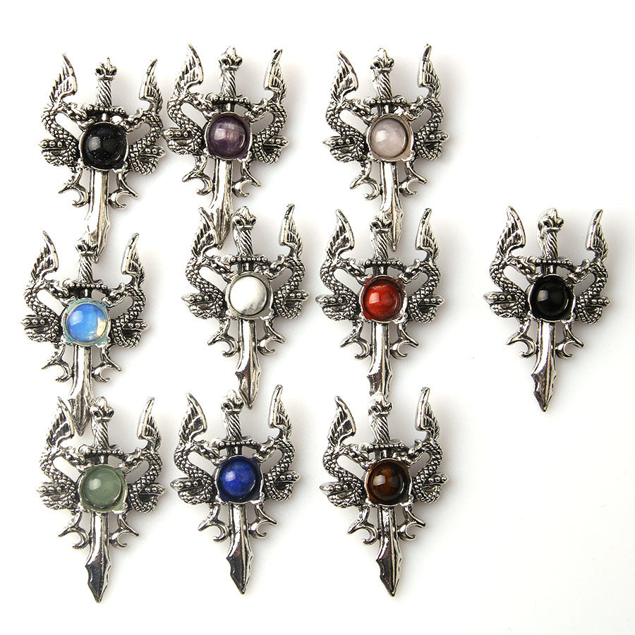 Pingente dominador masculino retrô de pedra de cristal duplo dragão