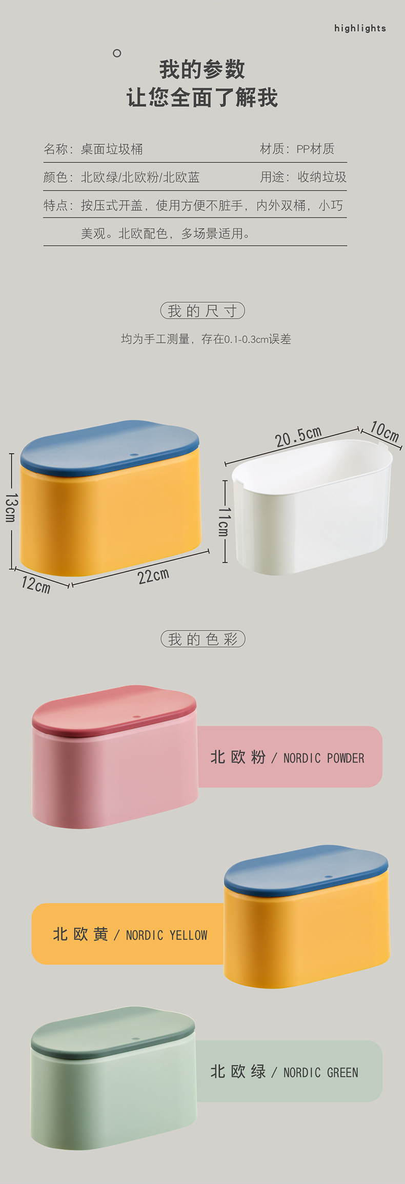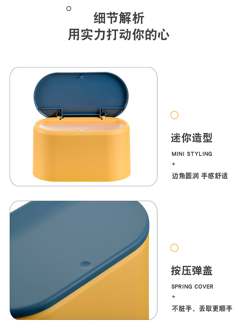 Desktop Wastebasket with LidPress & Pop Lid Type