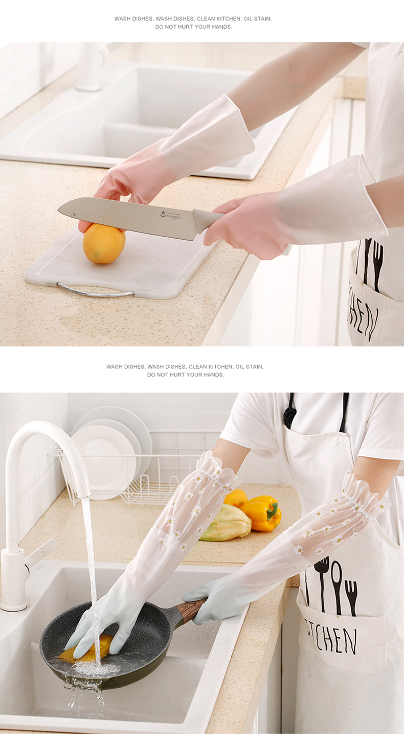 Dishwashing Gloves, Fleece-Lined Waterproof Rubber, Kitchen Cleaning