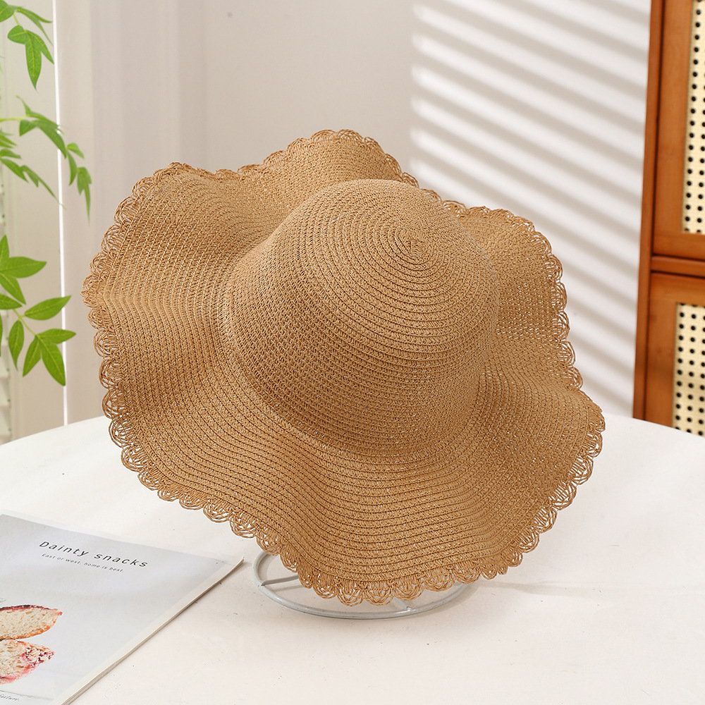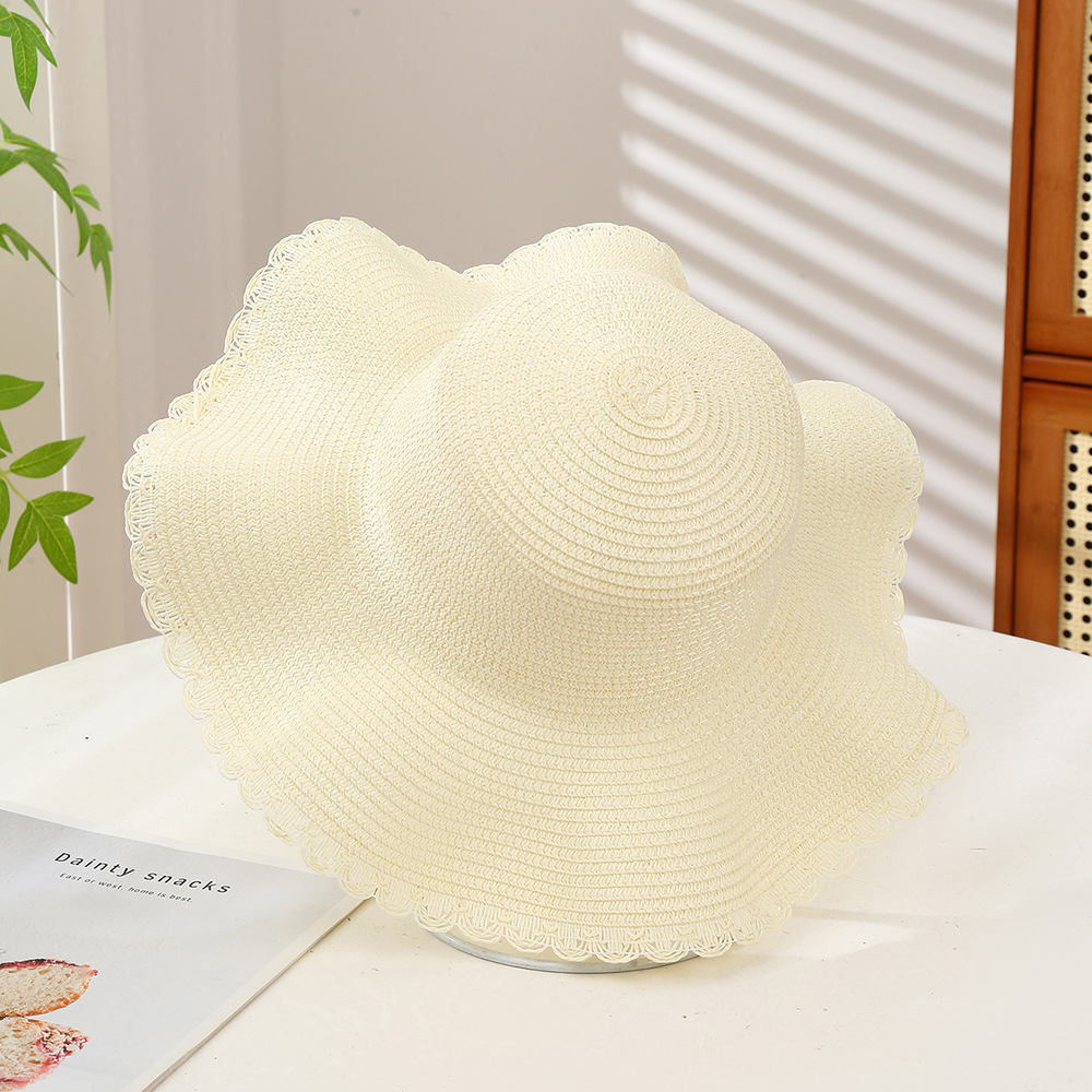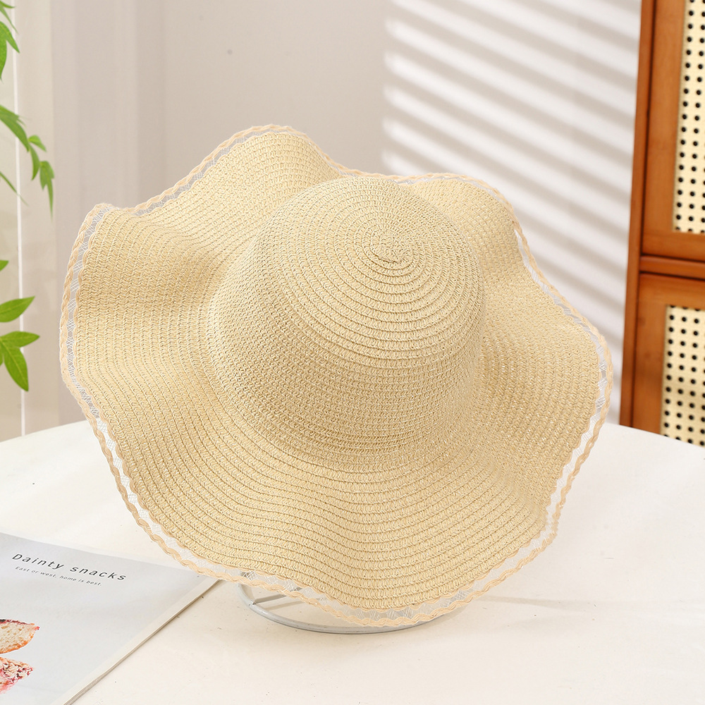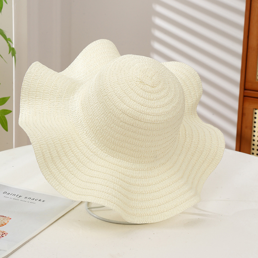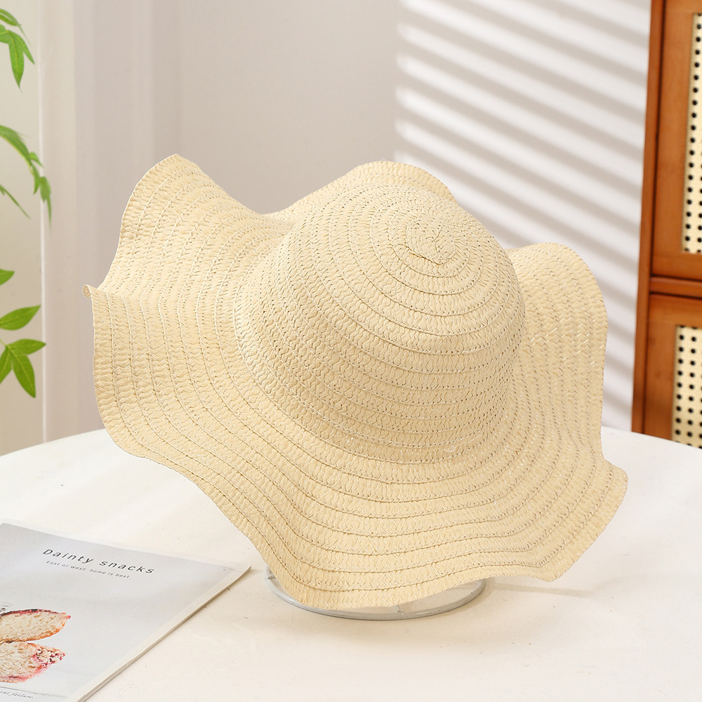 DIY Straw Hat Blank Big Brim Woven Wavy Sun Protection