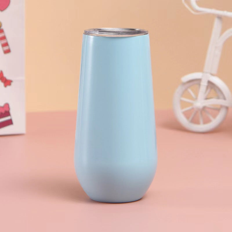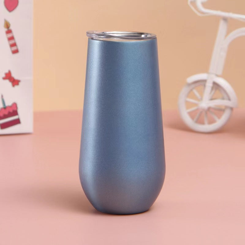 Double layer stainless steel 6oz long neck red wine glass