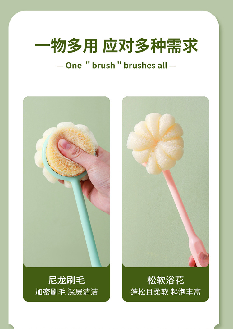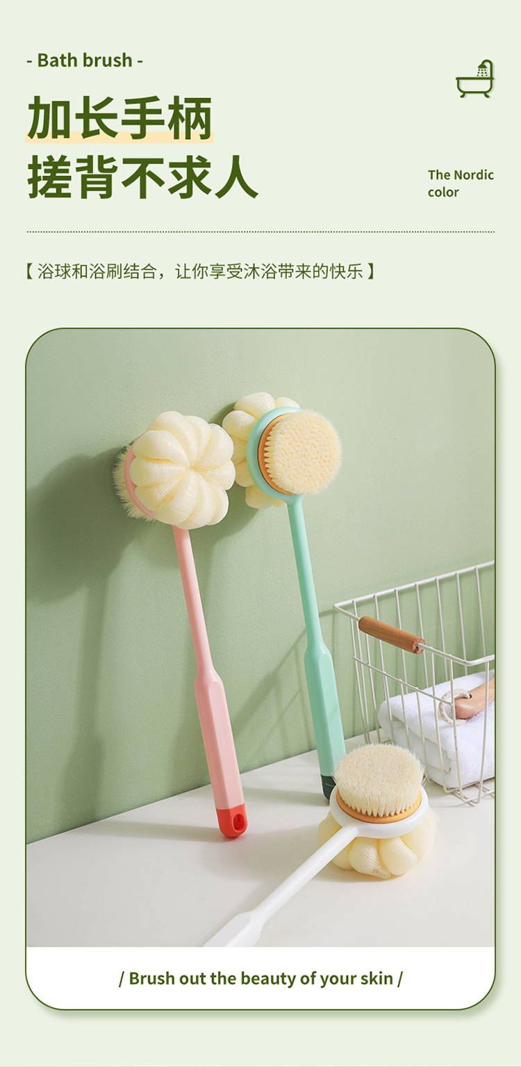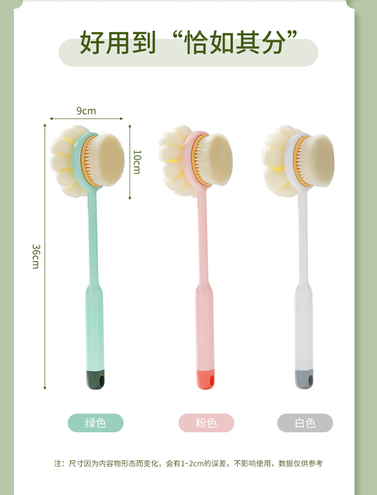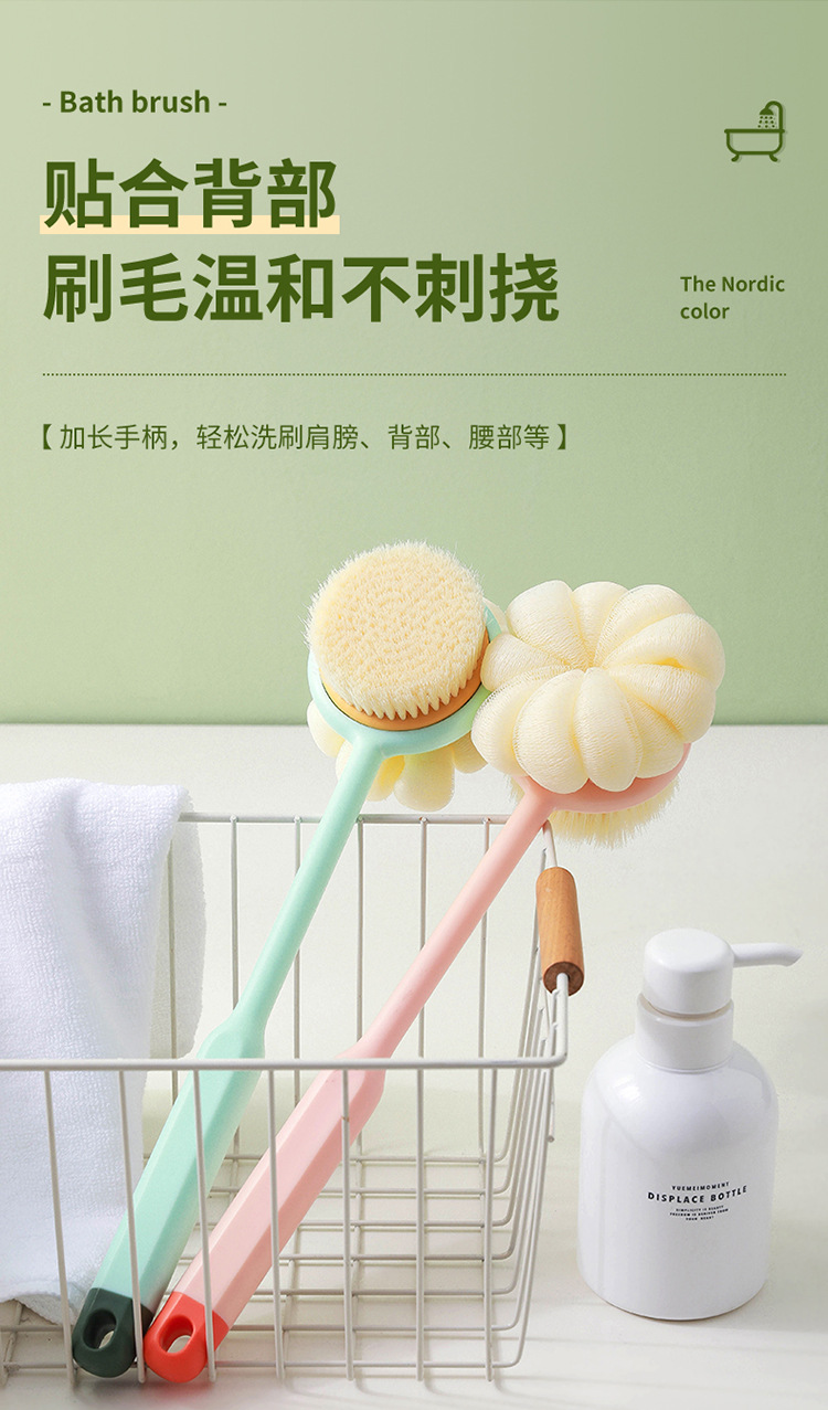 Double-Sided Soft Bristle Long Handle Bath Brush