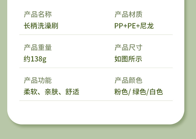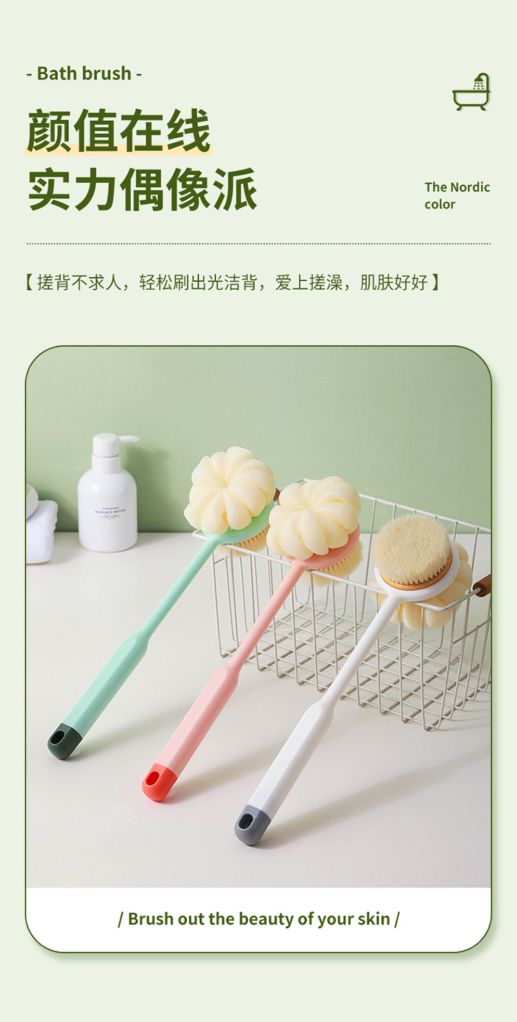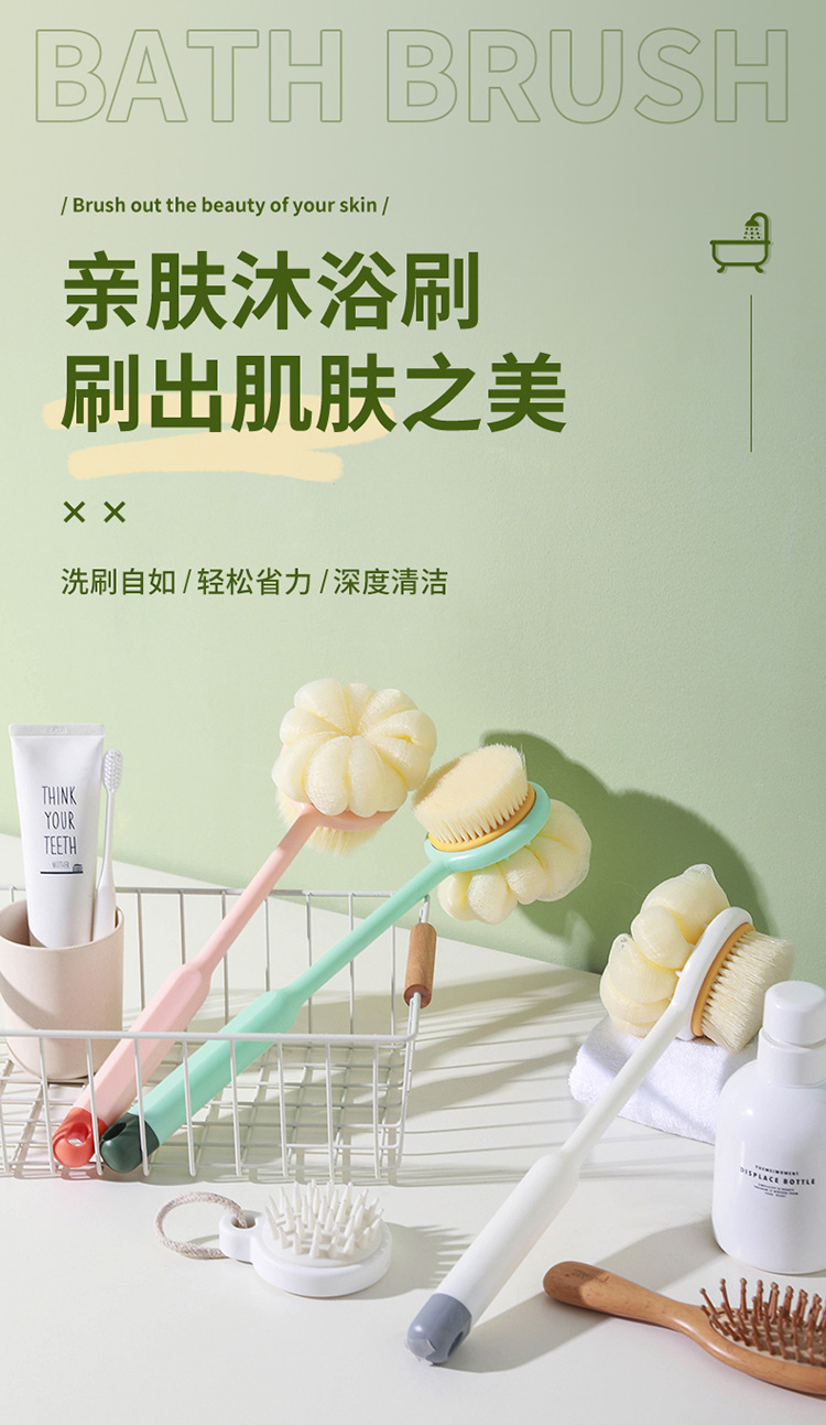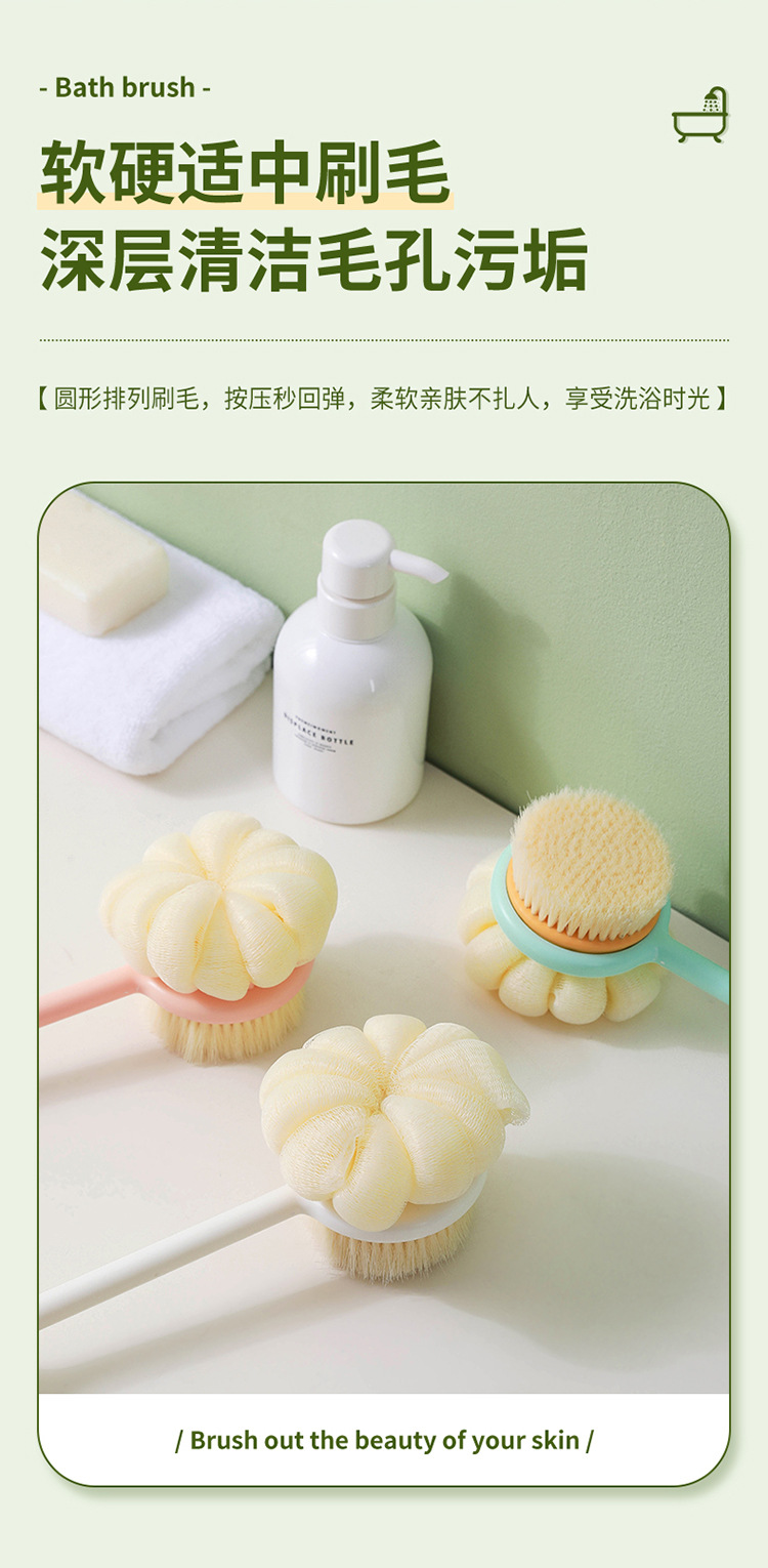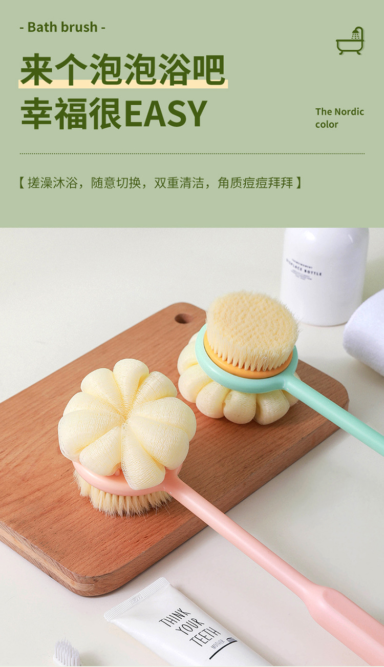 Double-Sided Soft Bristle Long Handle Bath Brush