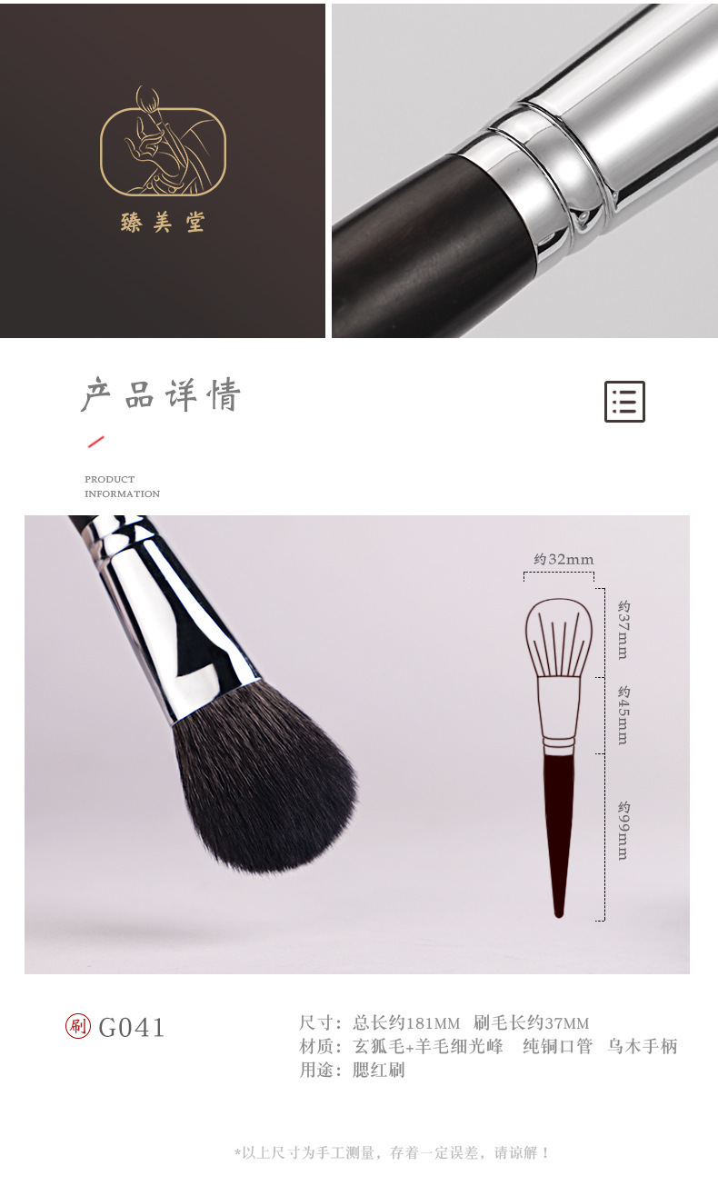 Ebony H35 Animal Hair Blush Brush, Wool Contour Brush