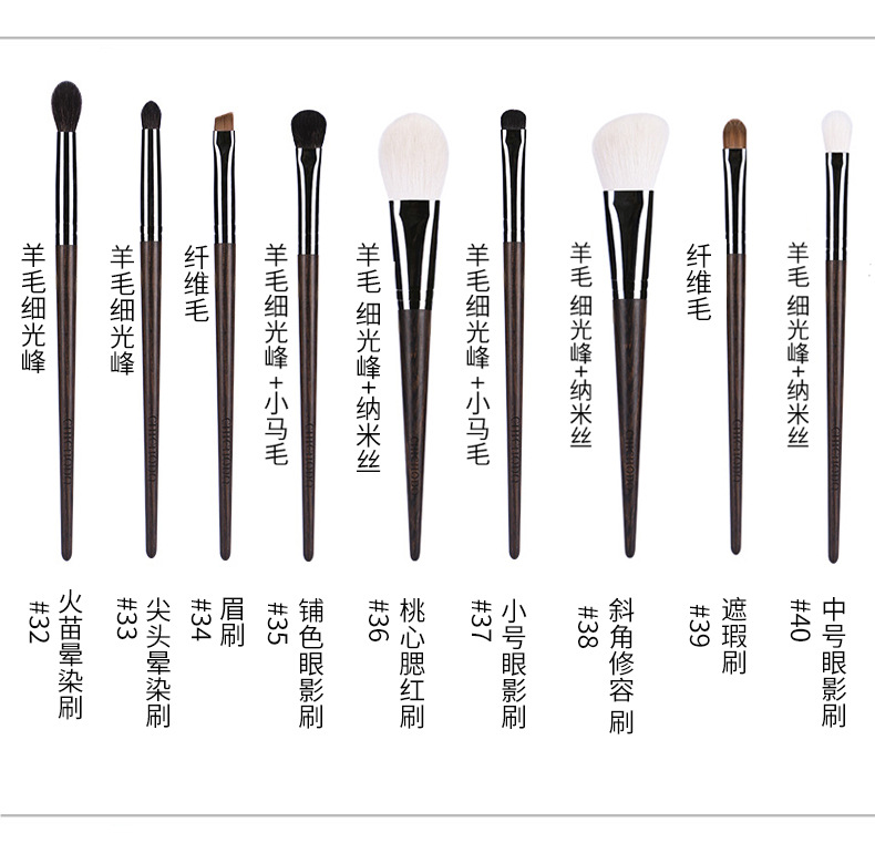 Ebony Wood Animal Hair 40-Piece Makeup Brush Set