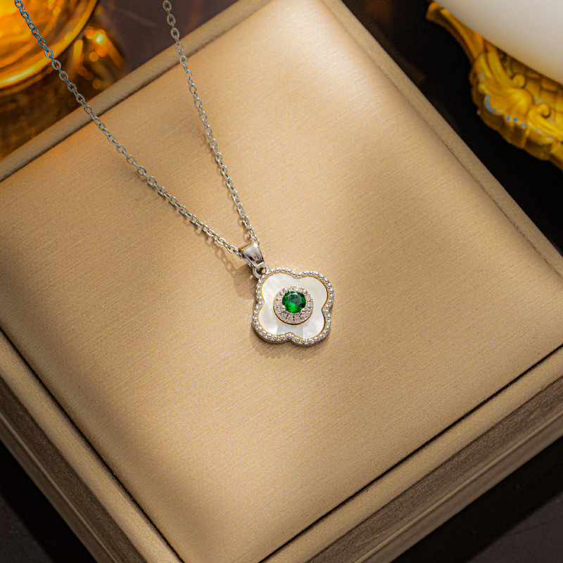 Colar elegante de trevo de quatro folhas, aço titânio com strass completo