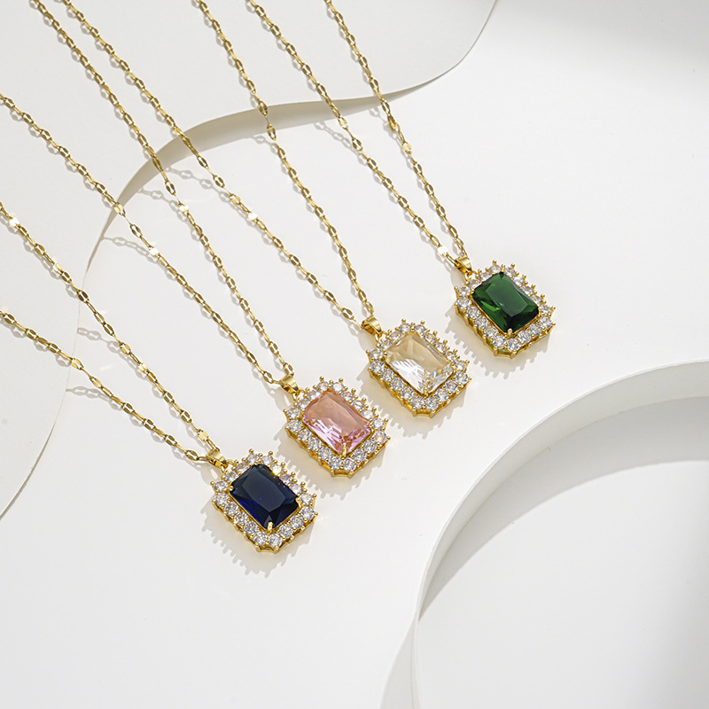 Elegante colar de gemas verdes douradas microincrustadas para mulheres