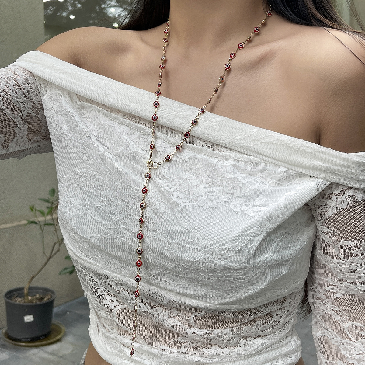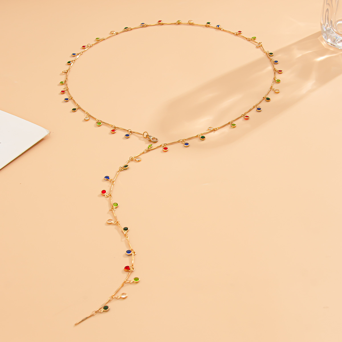 Color crystal y-shaped necklace
