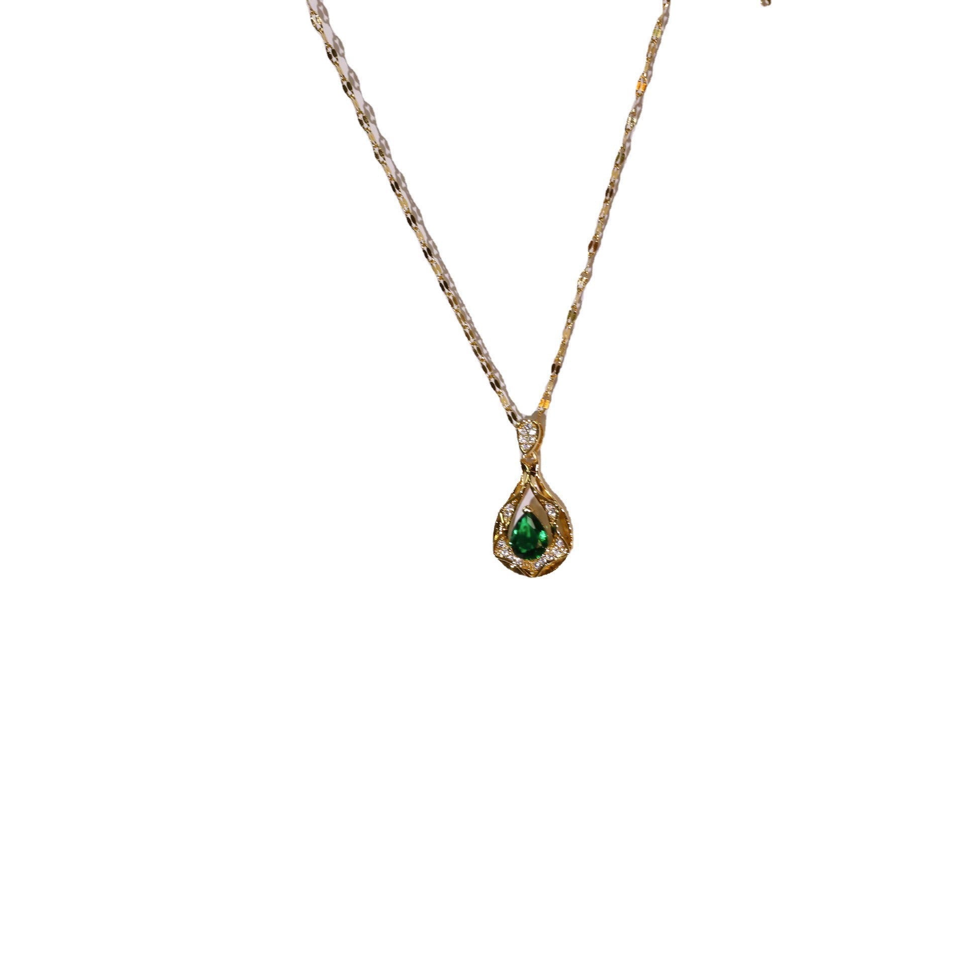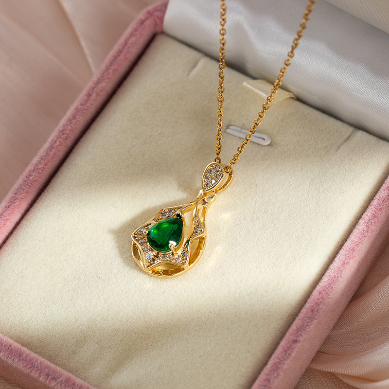 Emerald zircon titanium steel necklace