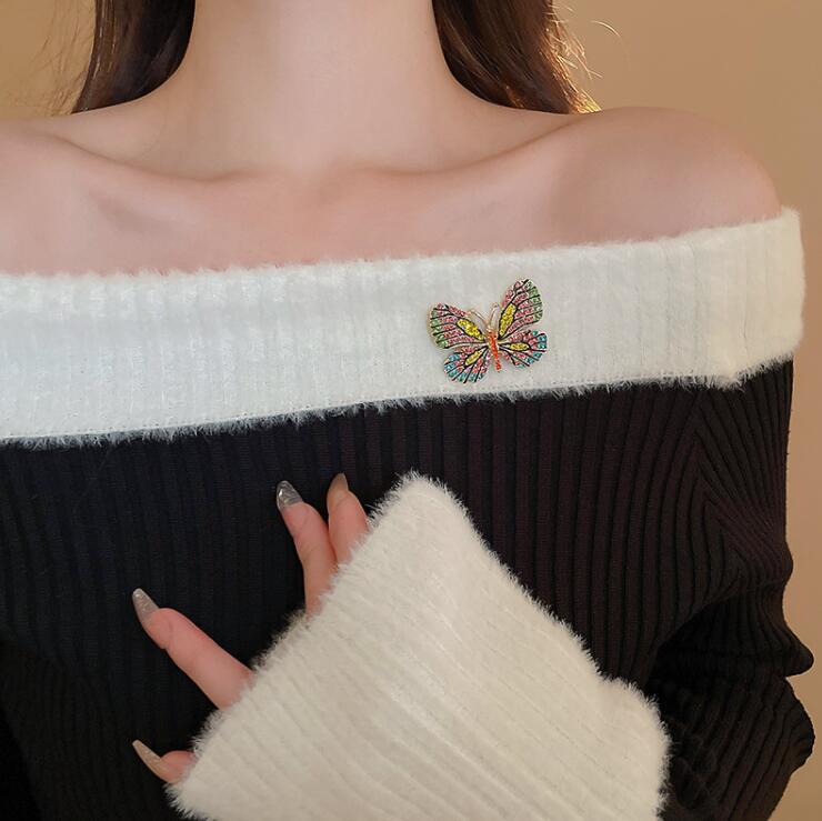 Diamond Butterfly Brooch Anti-light Pin
