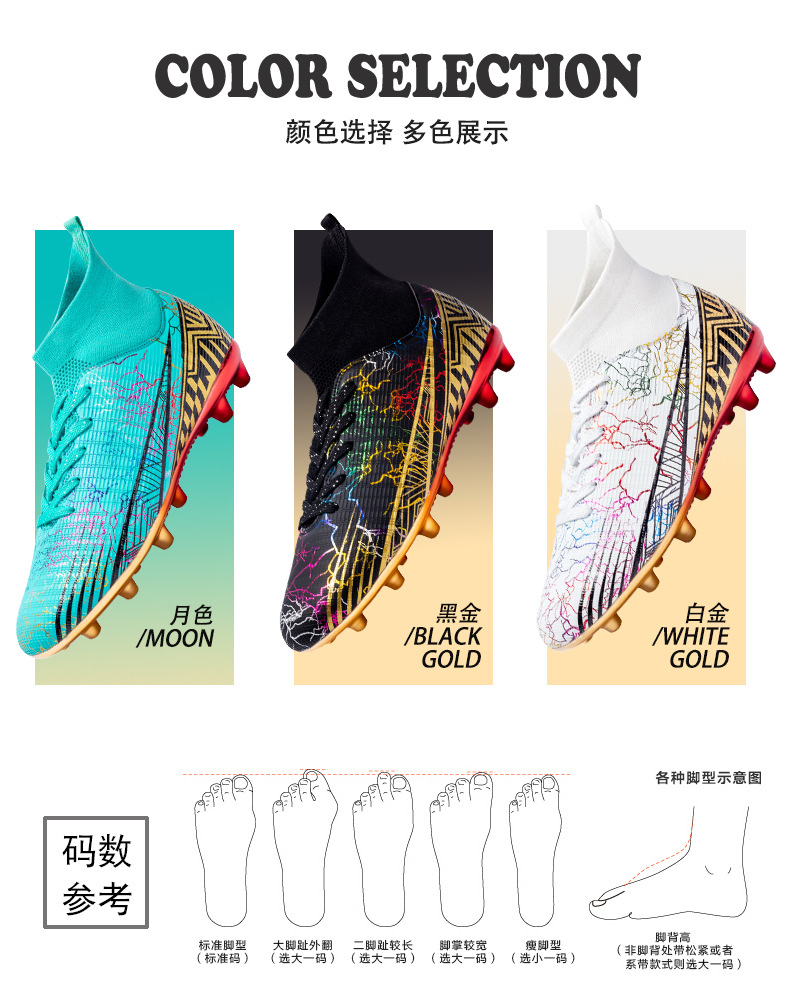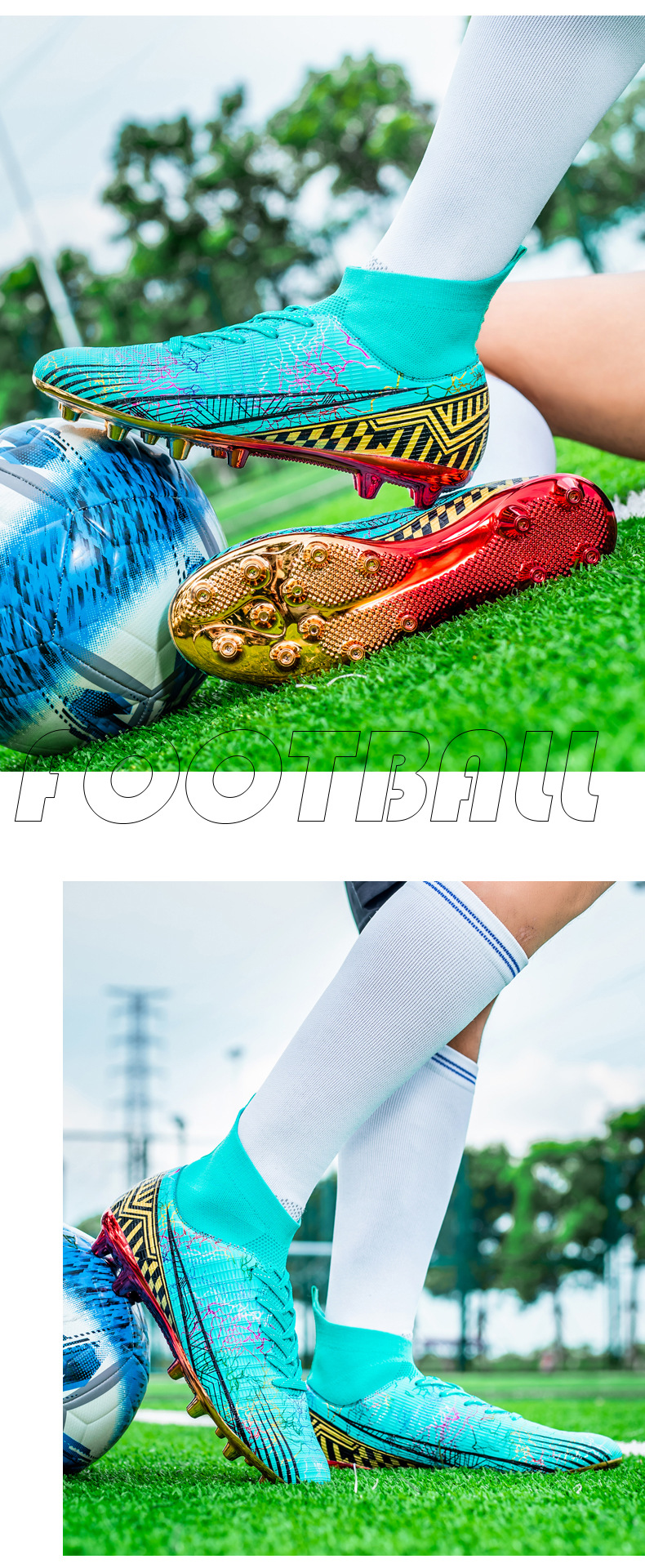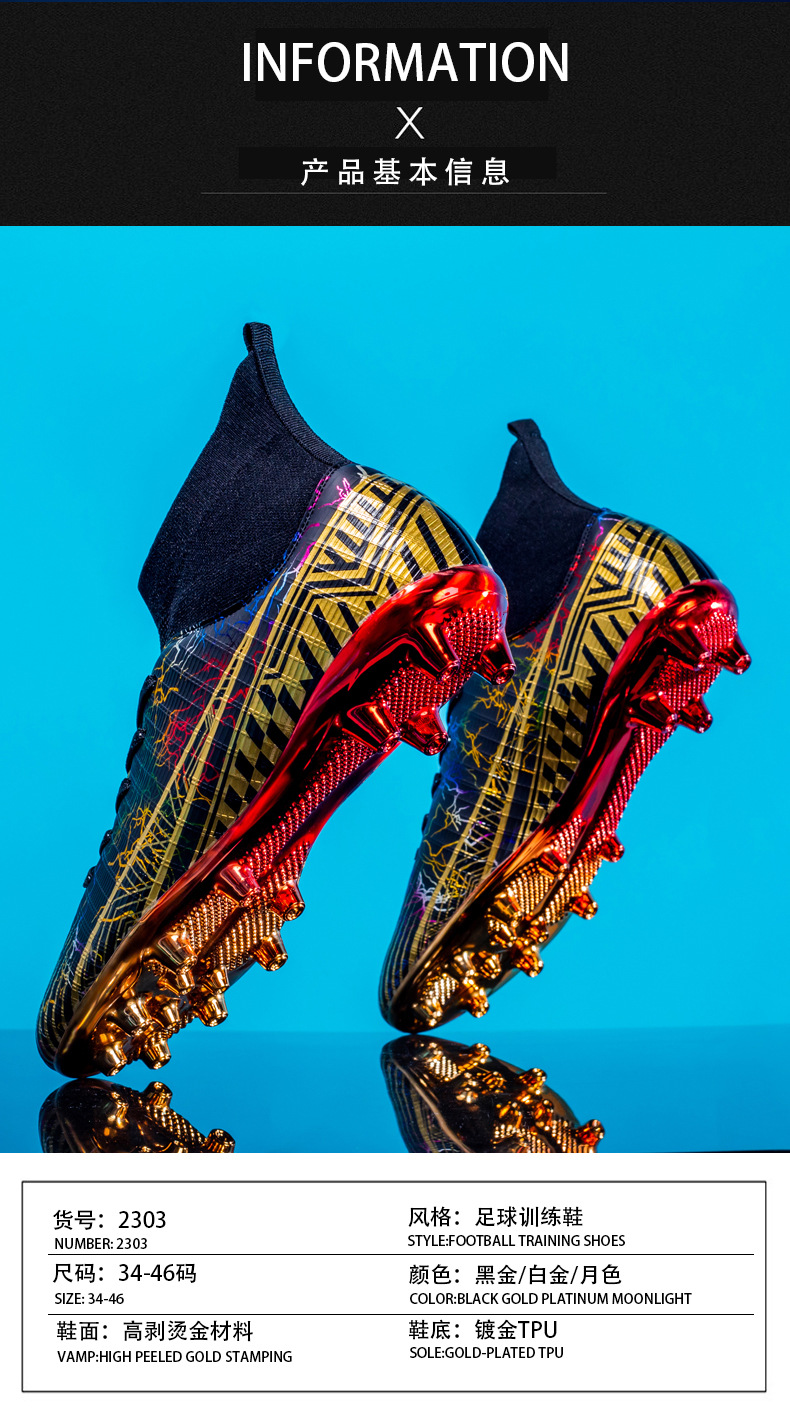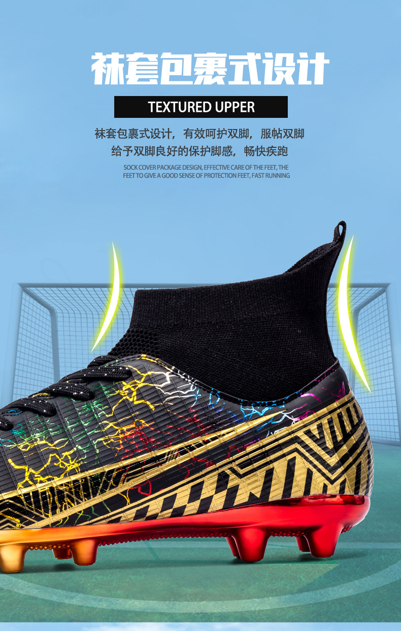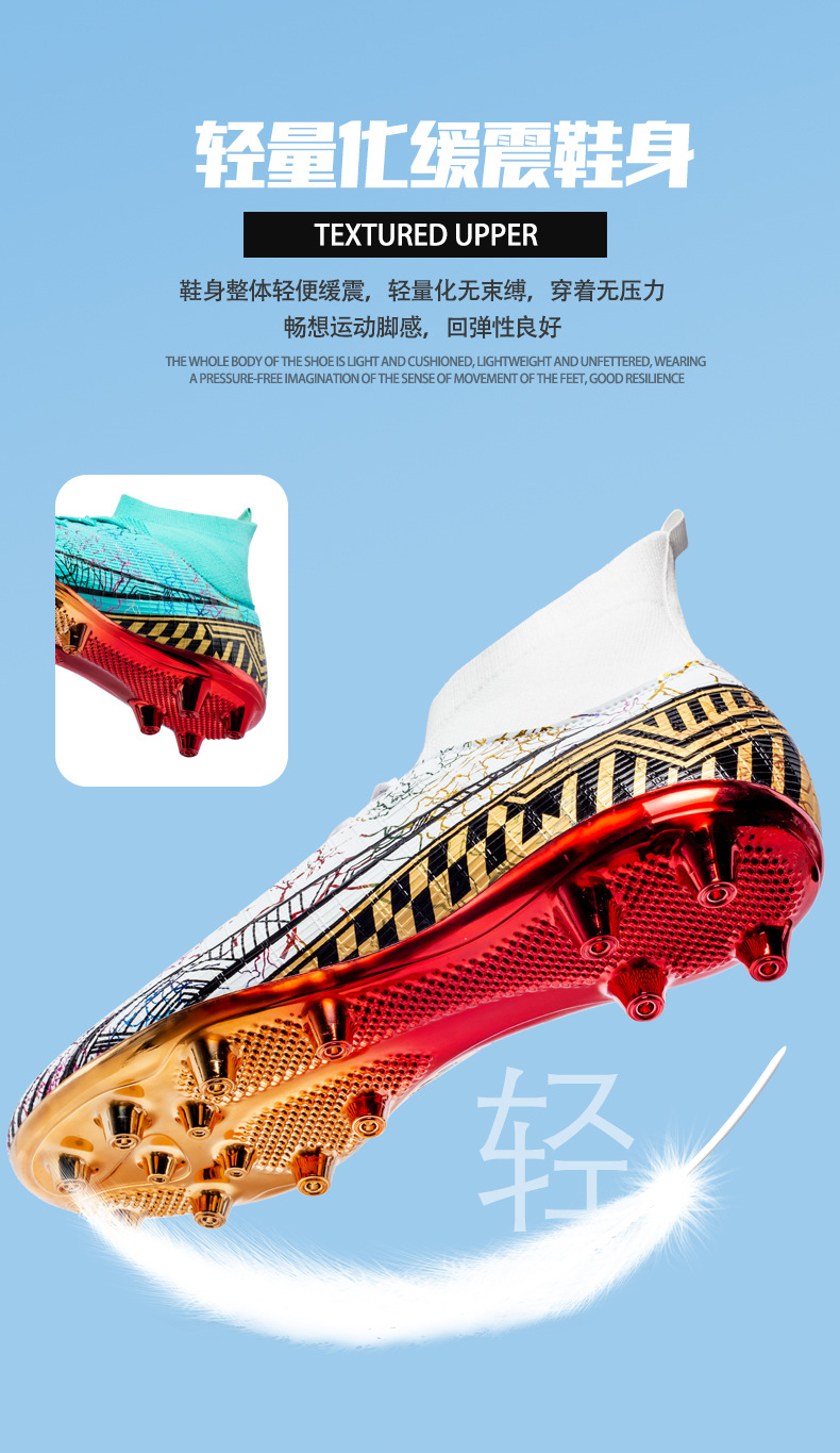 Gold-Plated AG Long Stud Soccer Shoes Youth Soccer Socks