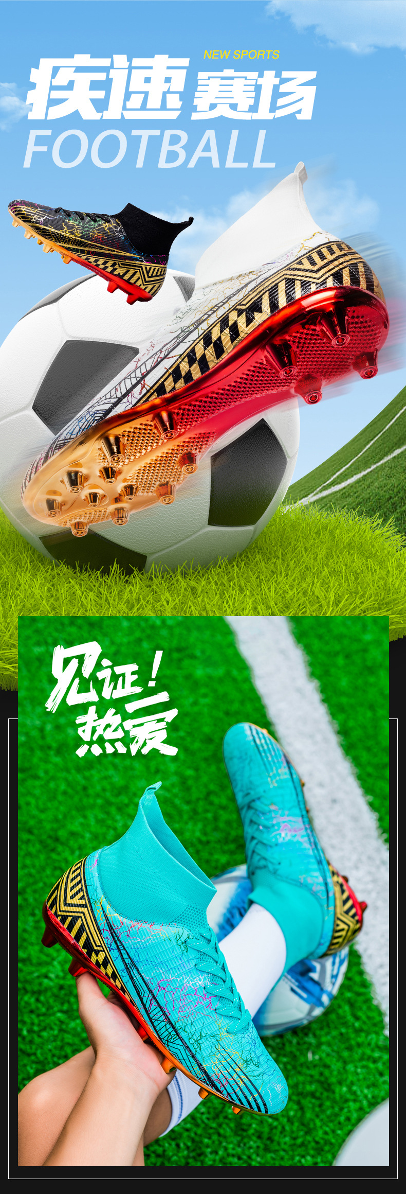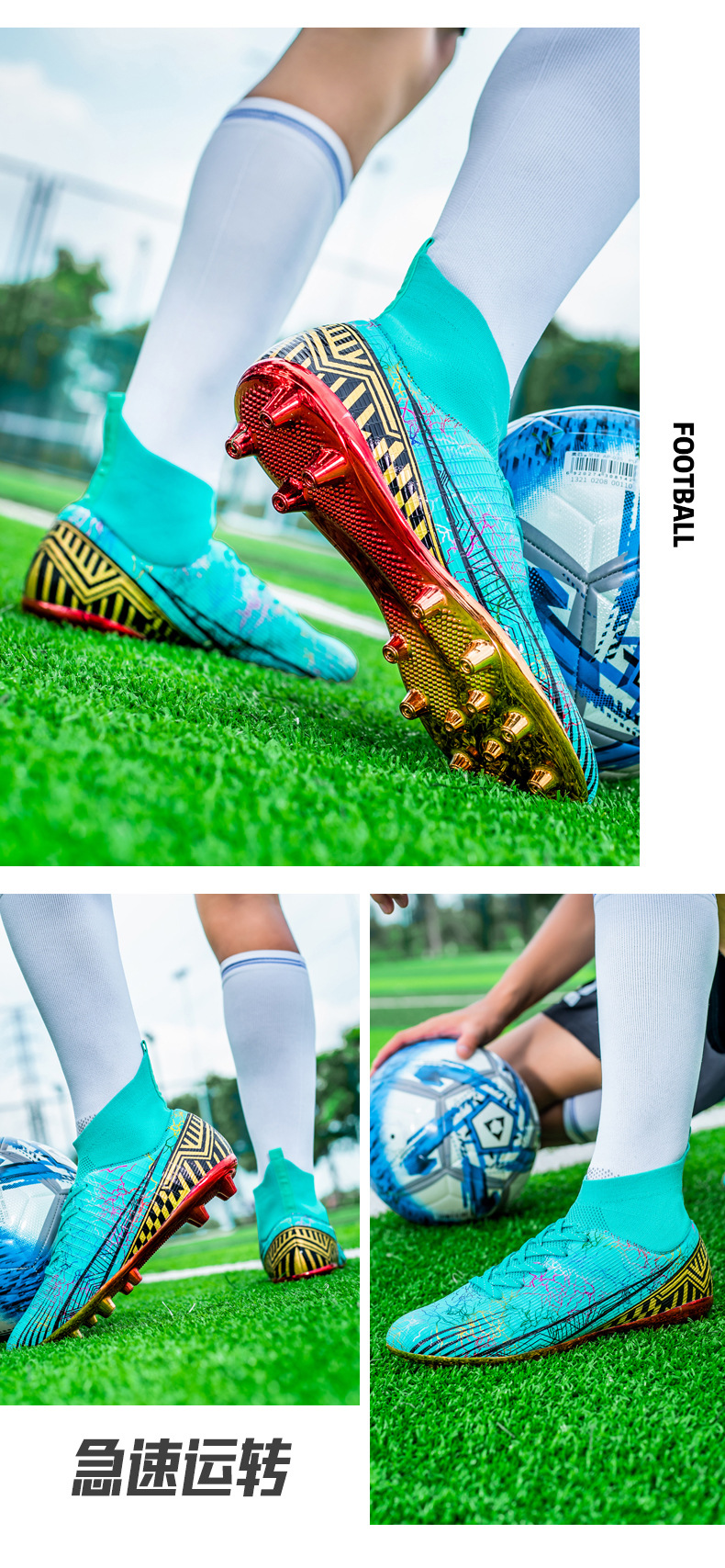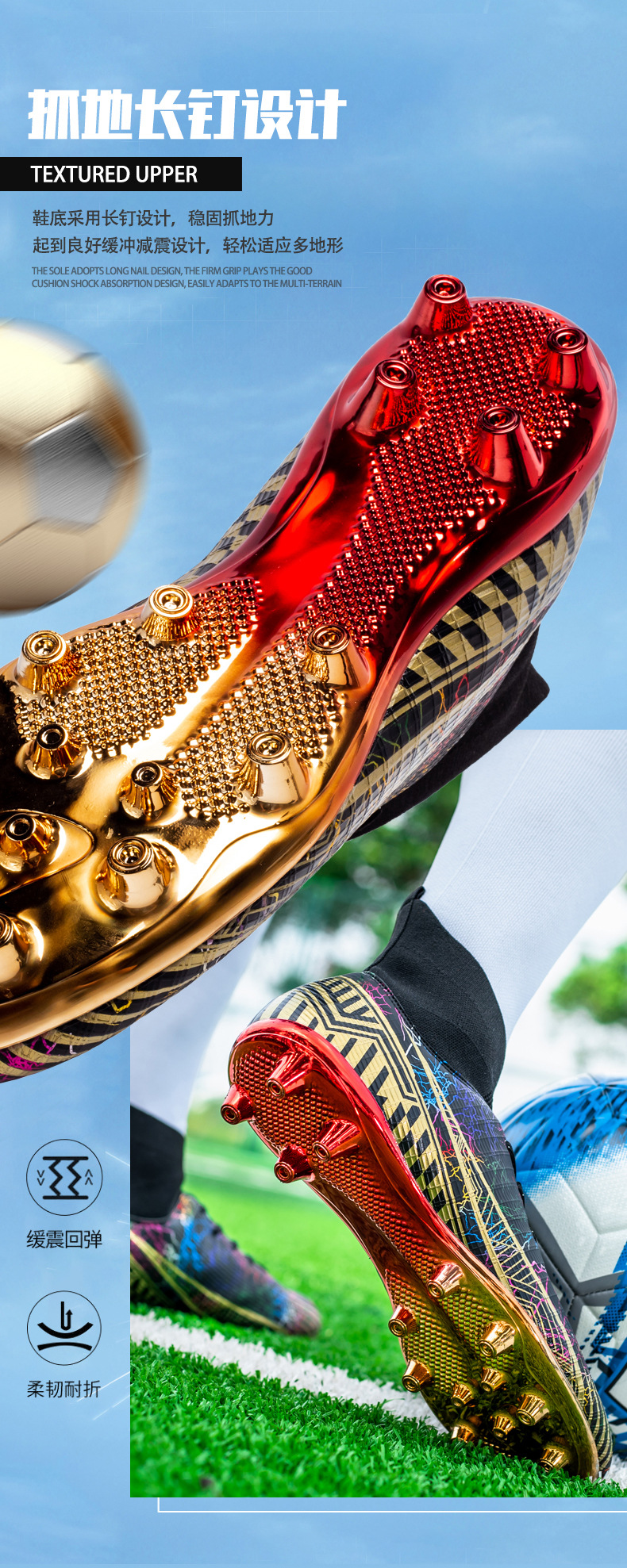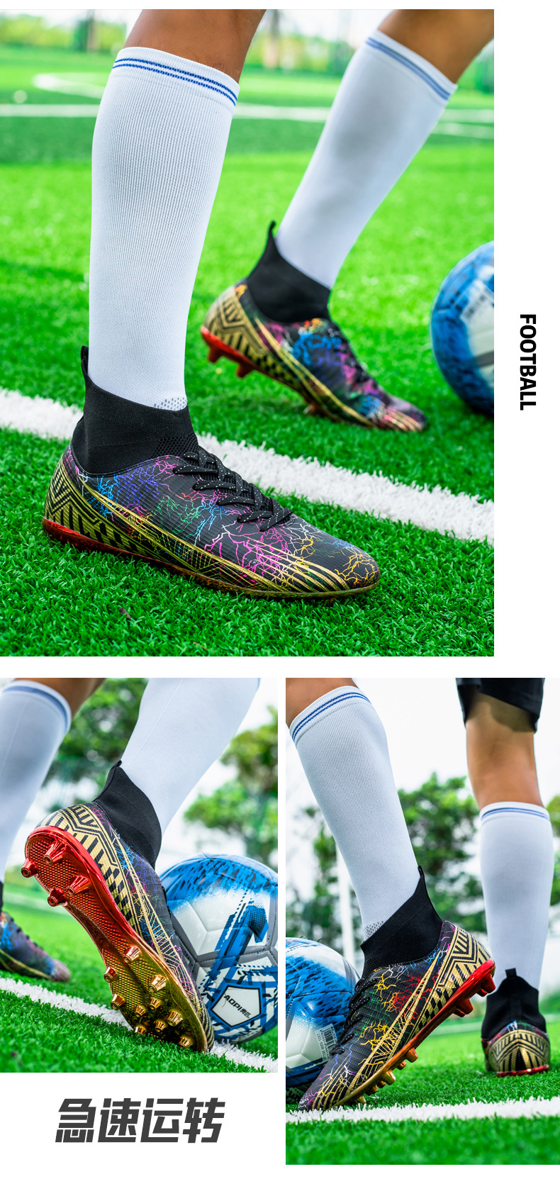 Gold-Plated AG Long Stud Soccer Shoes Youth Soccer Socks