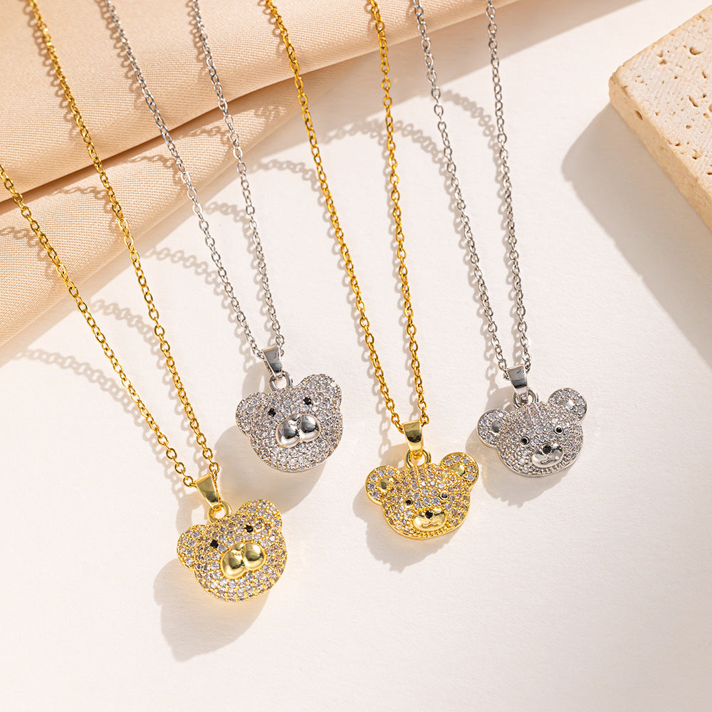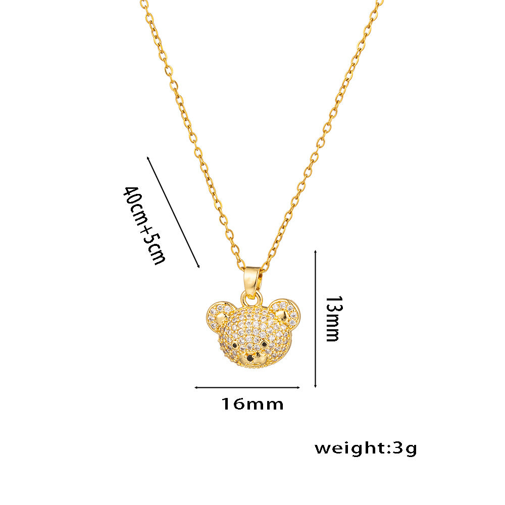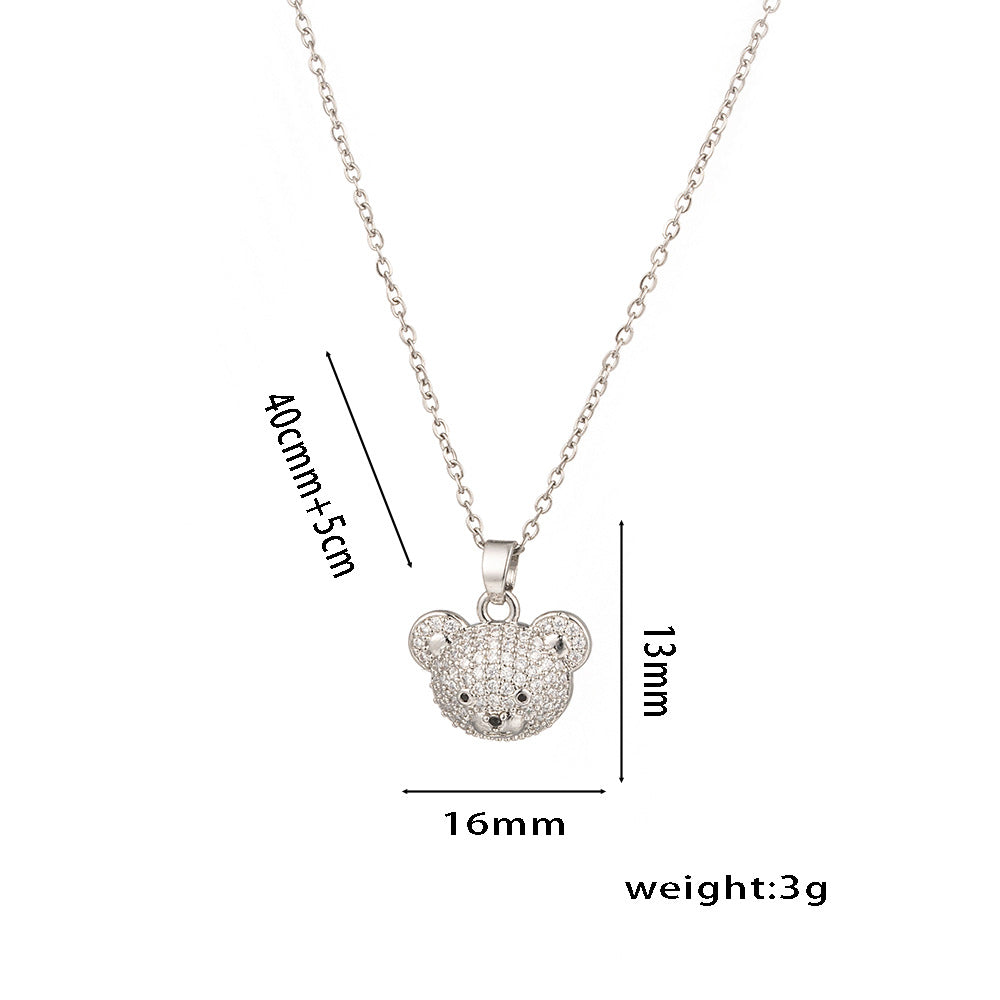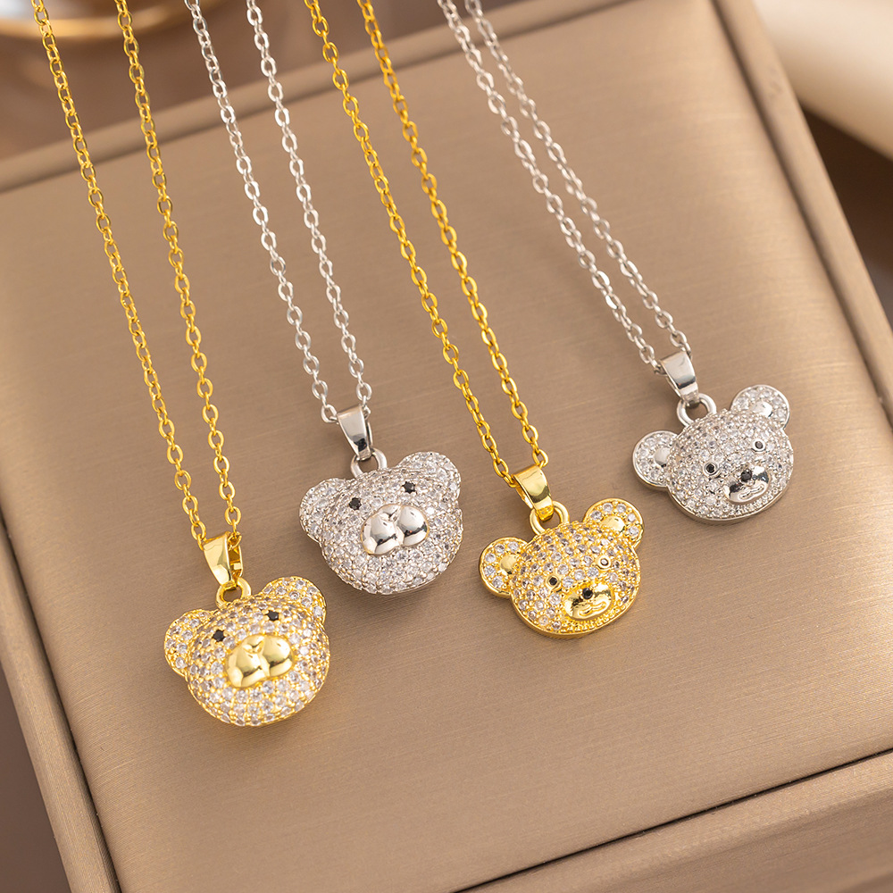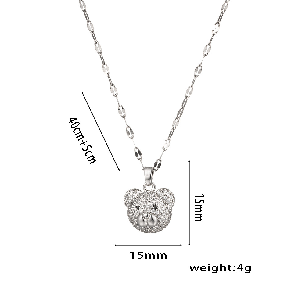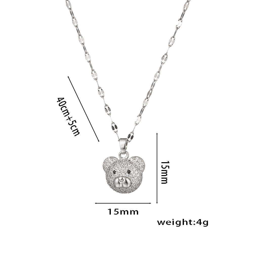 Lindo colar com pingente de urso e corrente de aço inoxidável