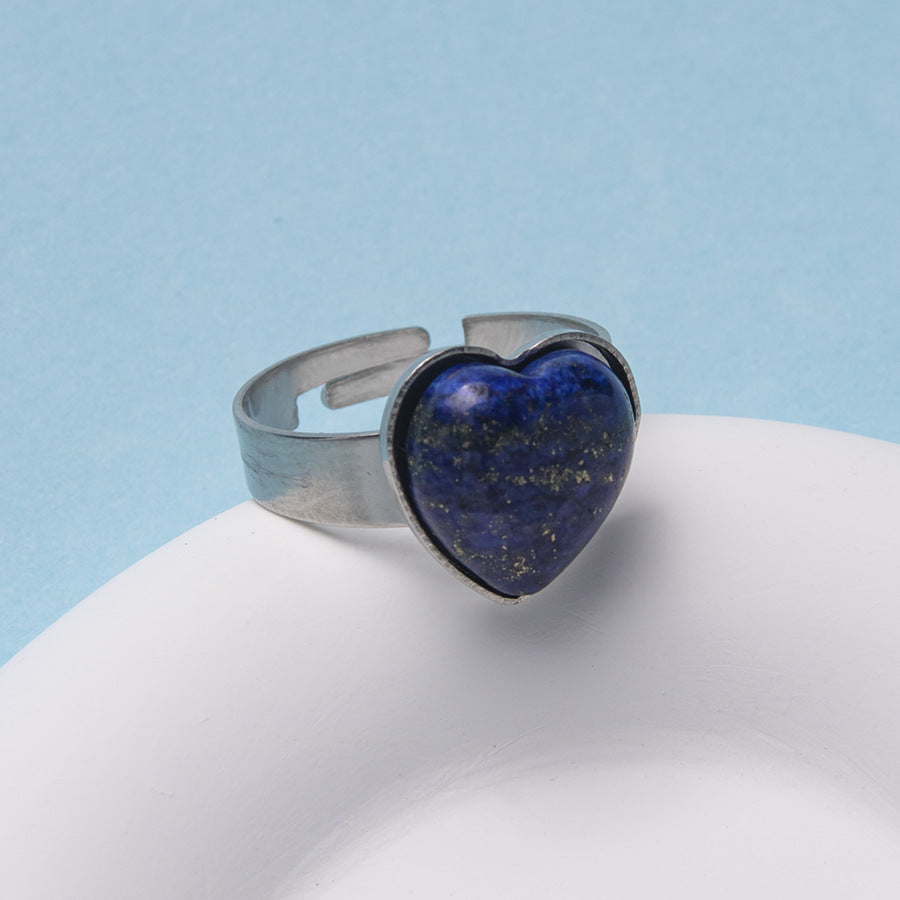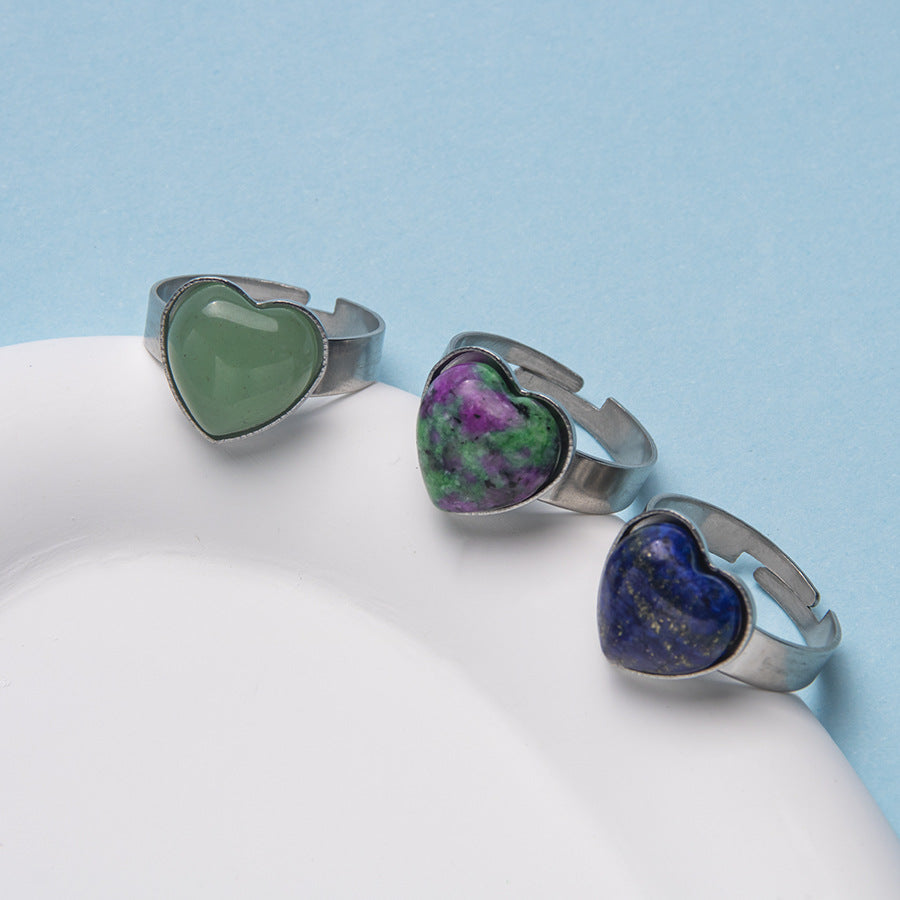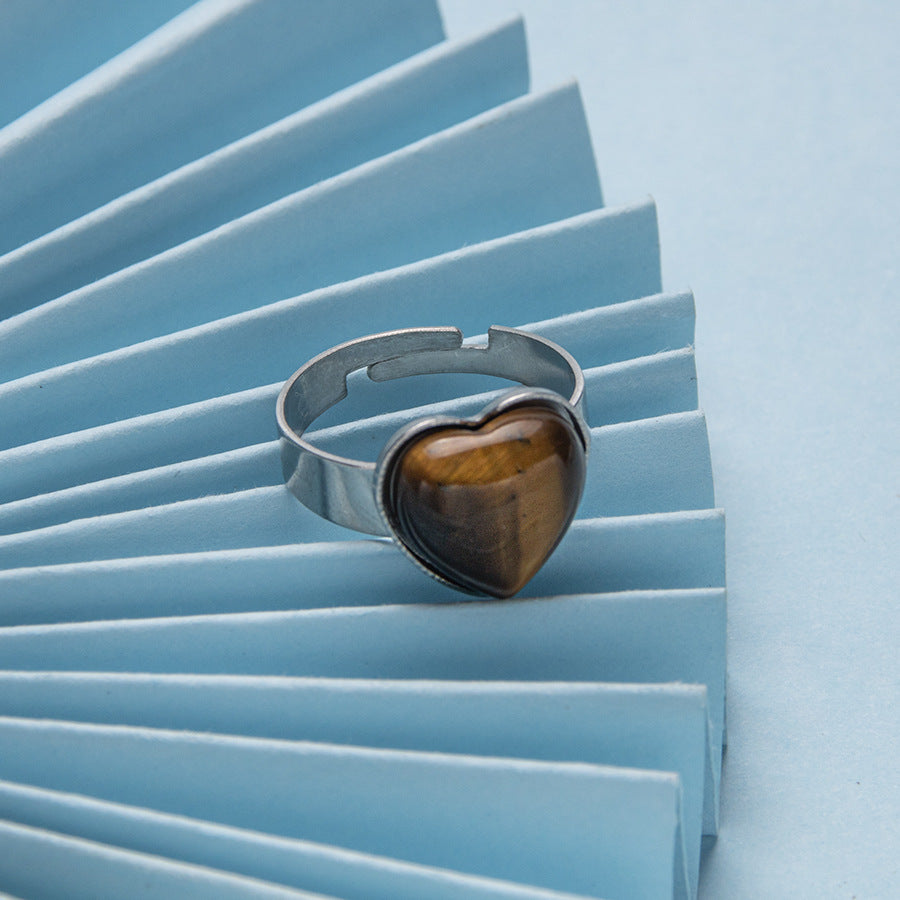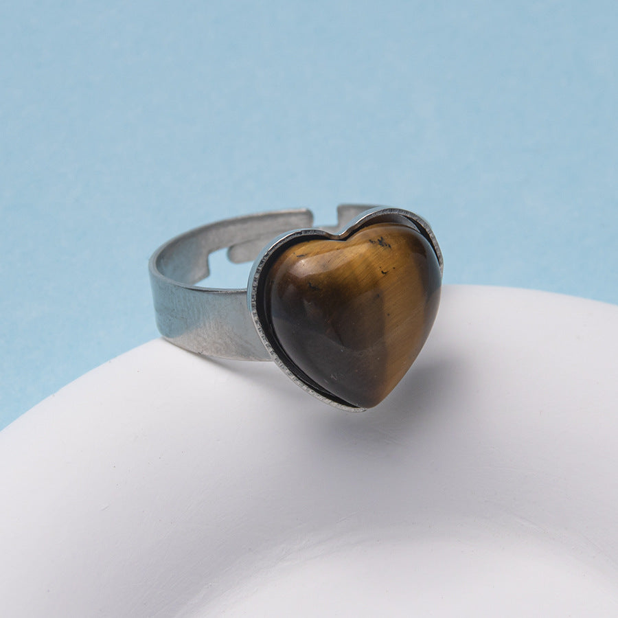Anel de aço inoxidável ajustável de pedra natural em forma de coração