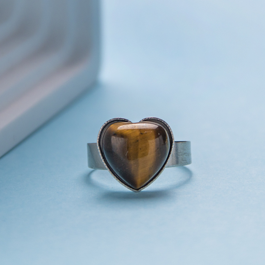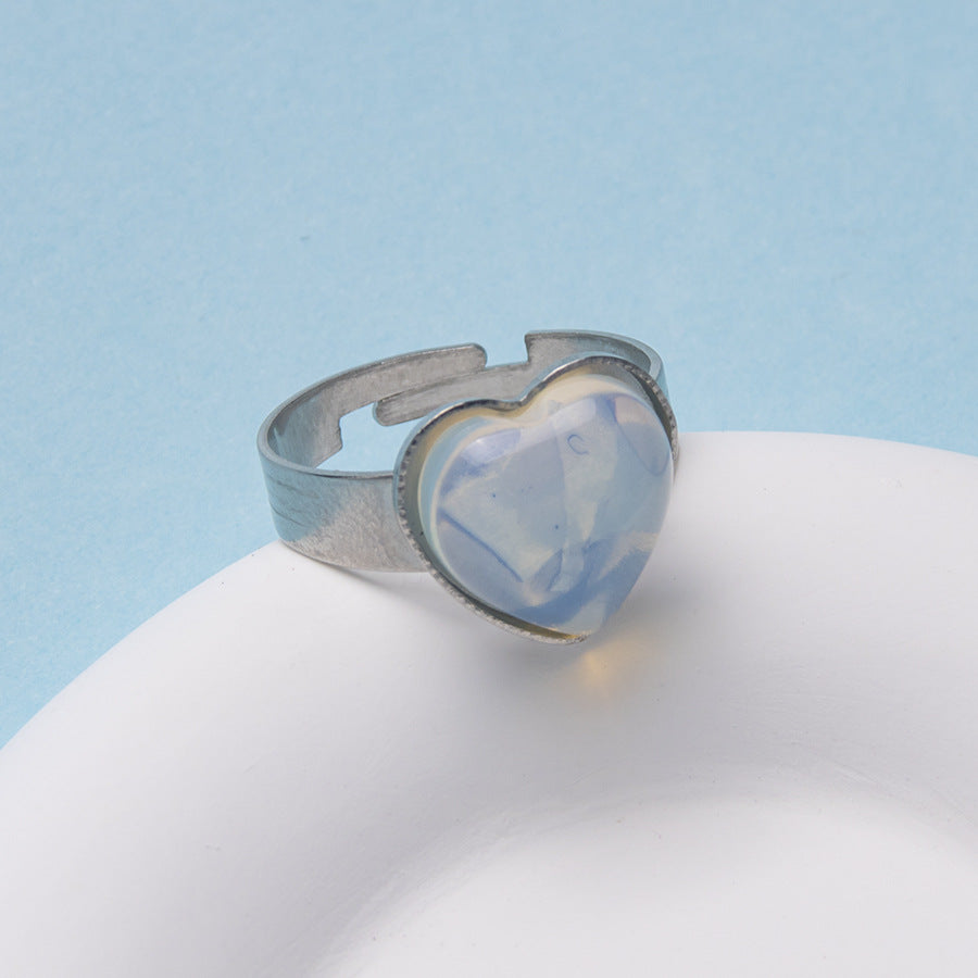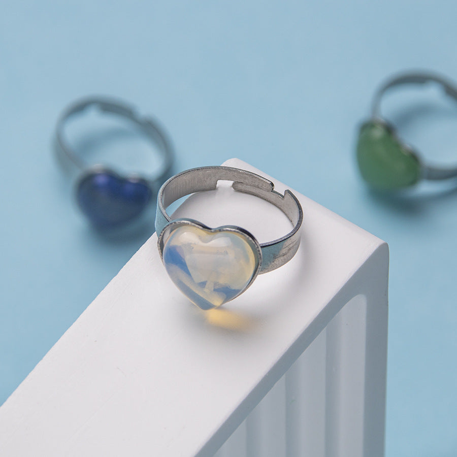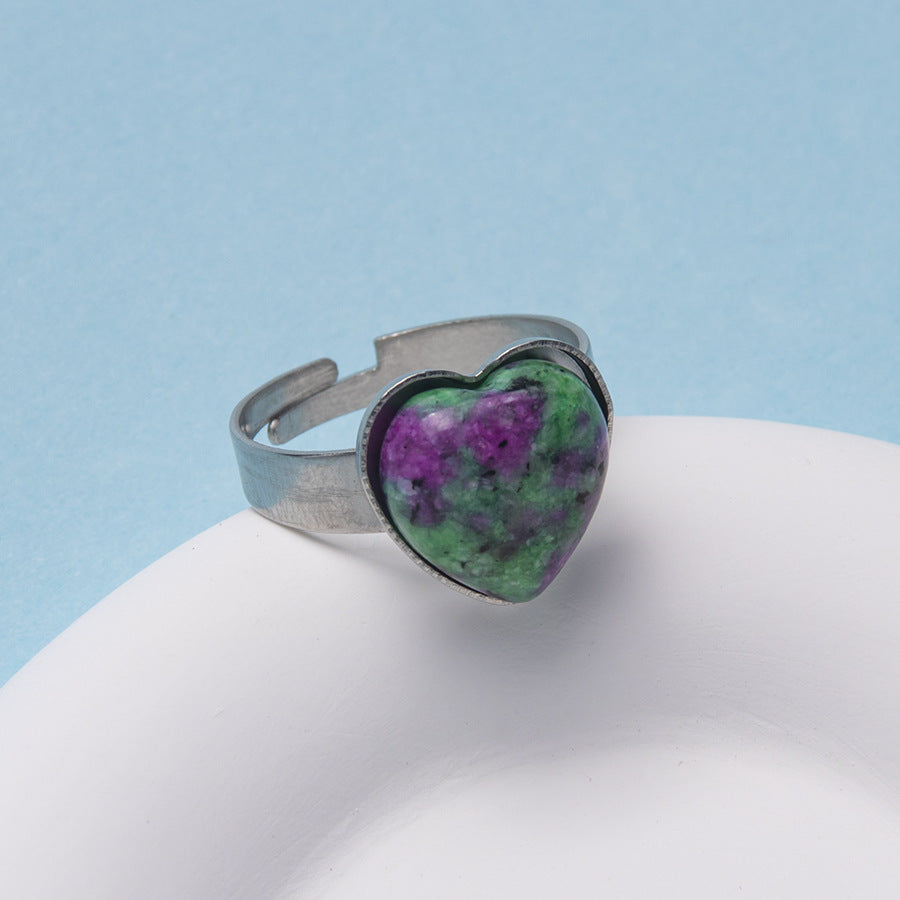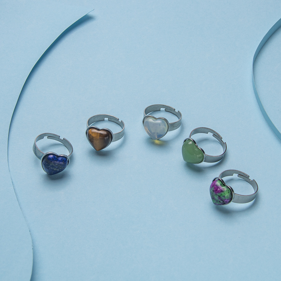 Anel de aço inoxidável ajustável de pedra natural em forma de coração