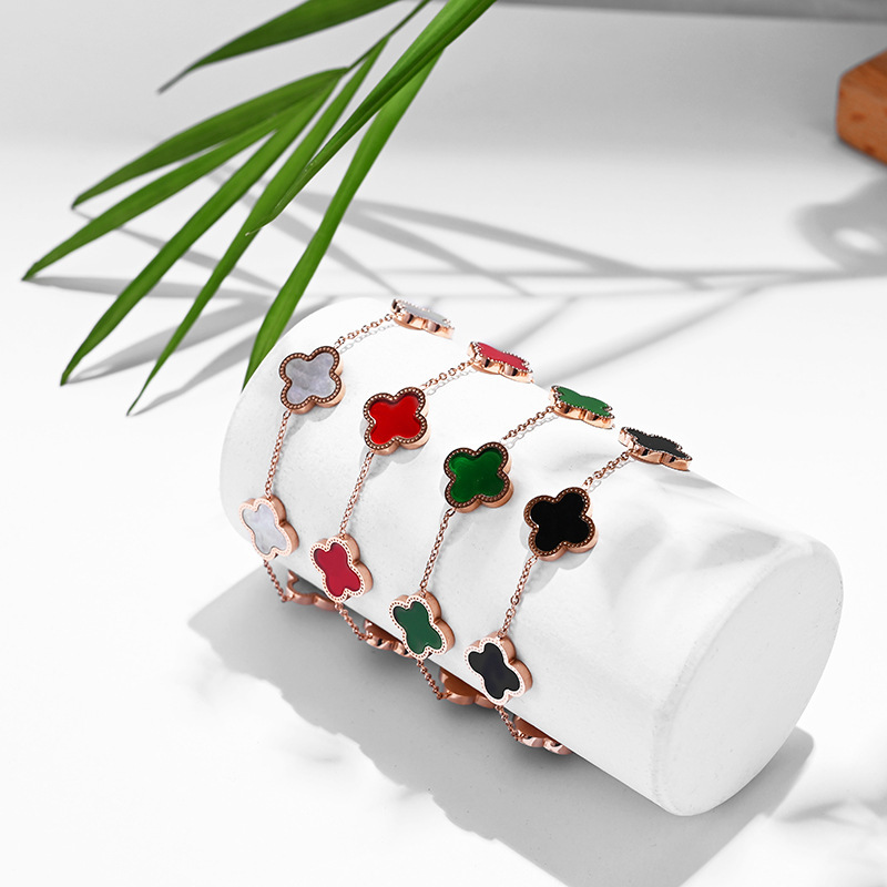 Five four-leaf clover titanium steel bracelet