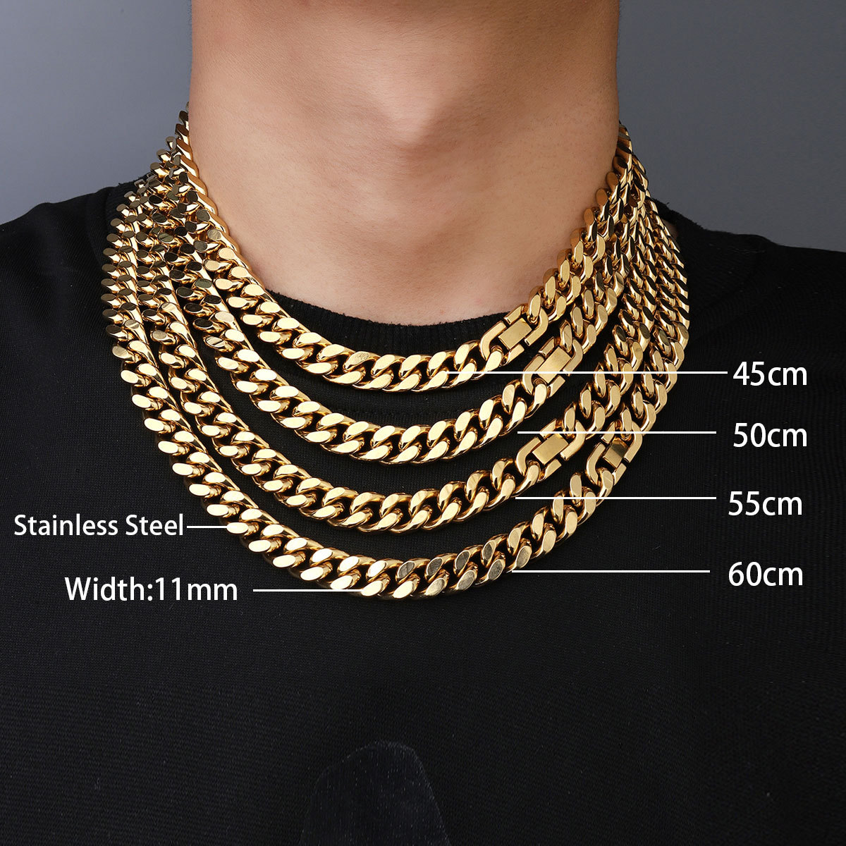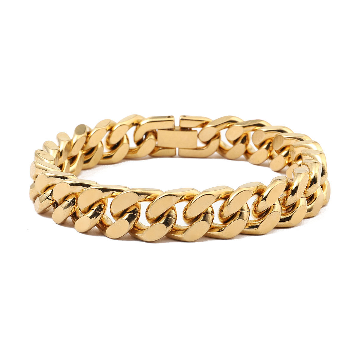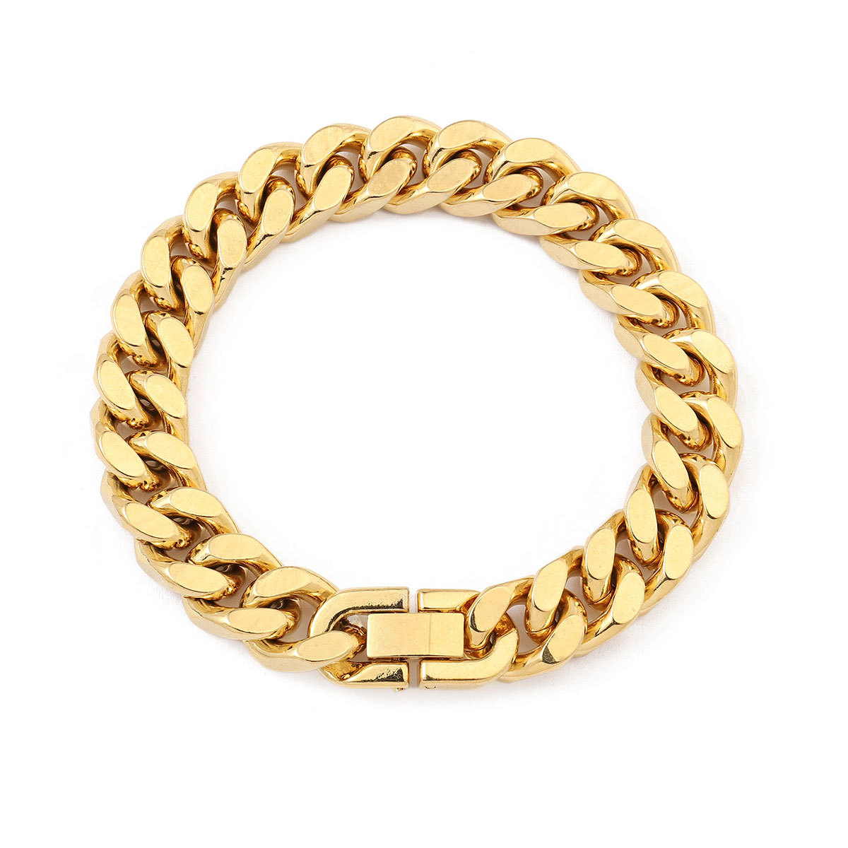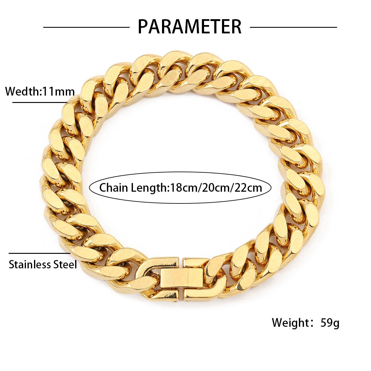 Hip Hop Cuban Chain Bracelet Men's Gold 11mm Encrypted