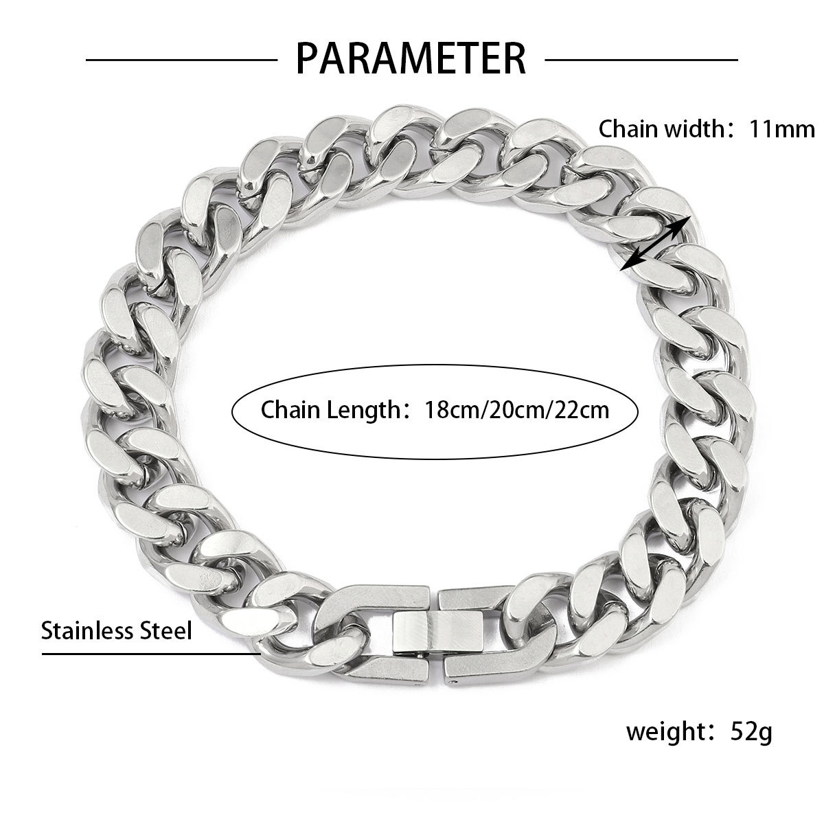 Hip Hop Cuban Chain Bracelet Men's 11mm Four-Sided Grinding