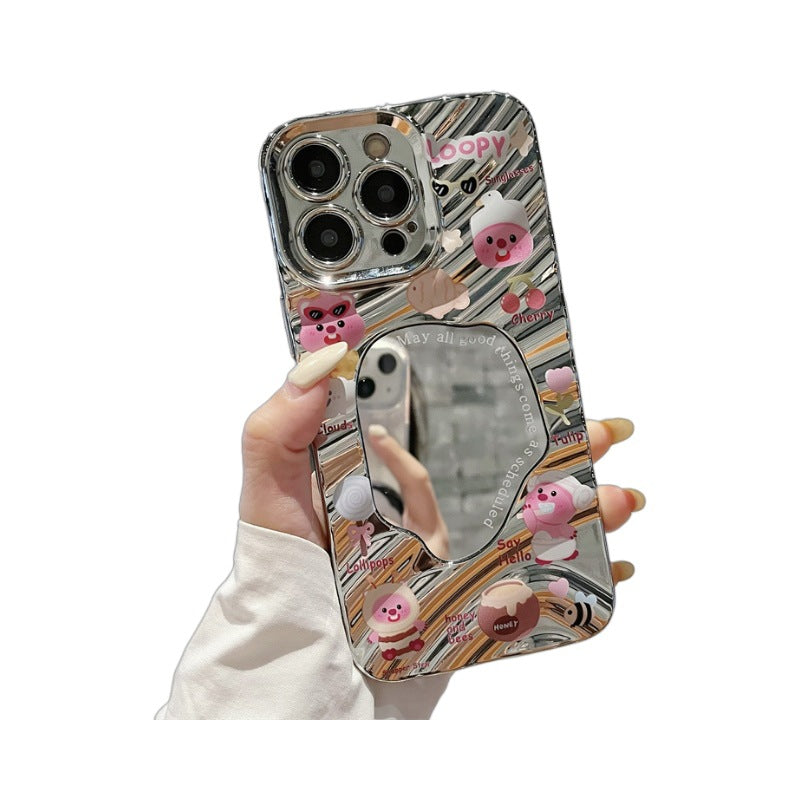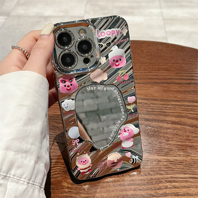 Wavy Mirror Beaver Case iPhone15 11 14 Electroplated TPU Cover