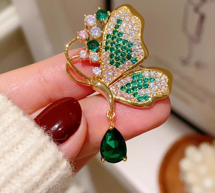 Emerald Full Diamond Butterfly Brooch